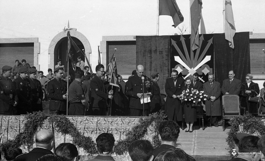 Falange. Maria Dolors Salazar Cortada, filla de l'alcalde Salazar, amb autoritats.