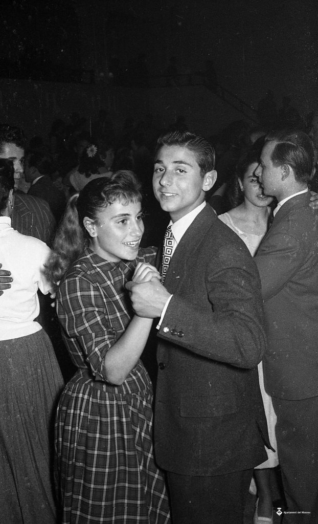 Maria Antònia Moré Fàbregas ballant amb un noi.
