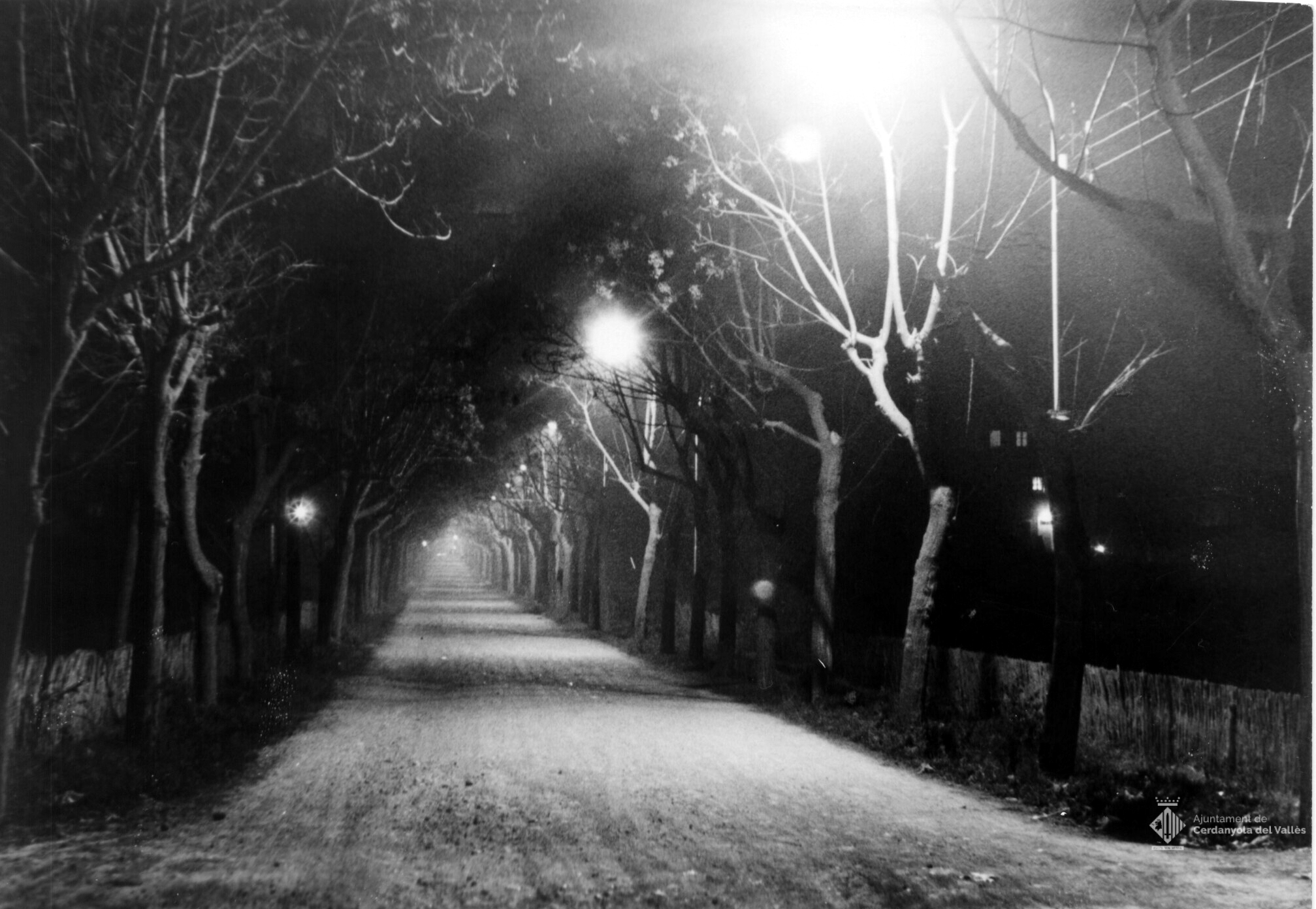 Enllumenat elèctric de carrers a Cerdanyola del Vallès la dècada de 1960 (1962 probablement)
