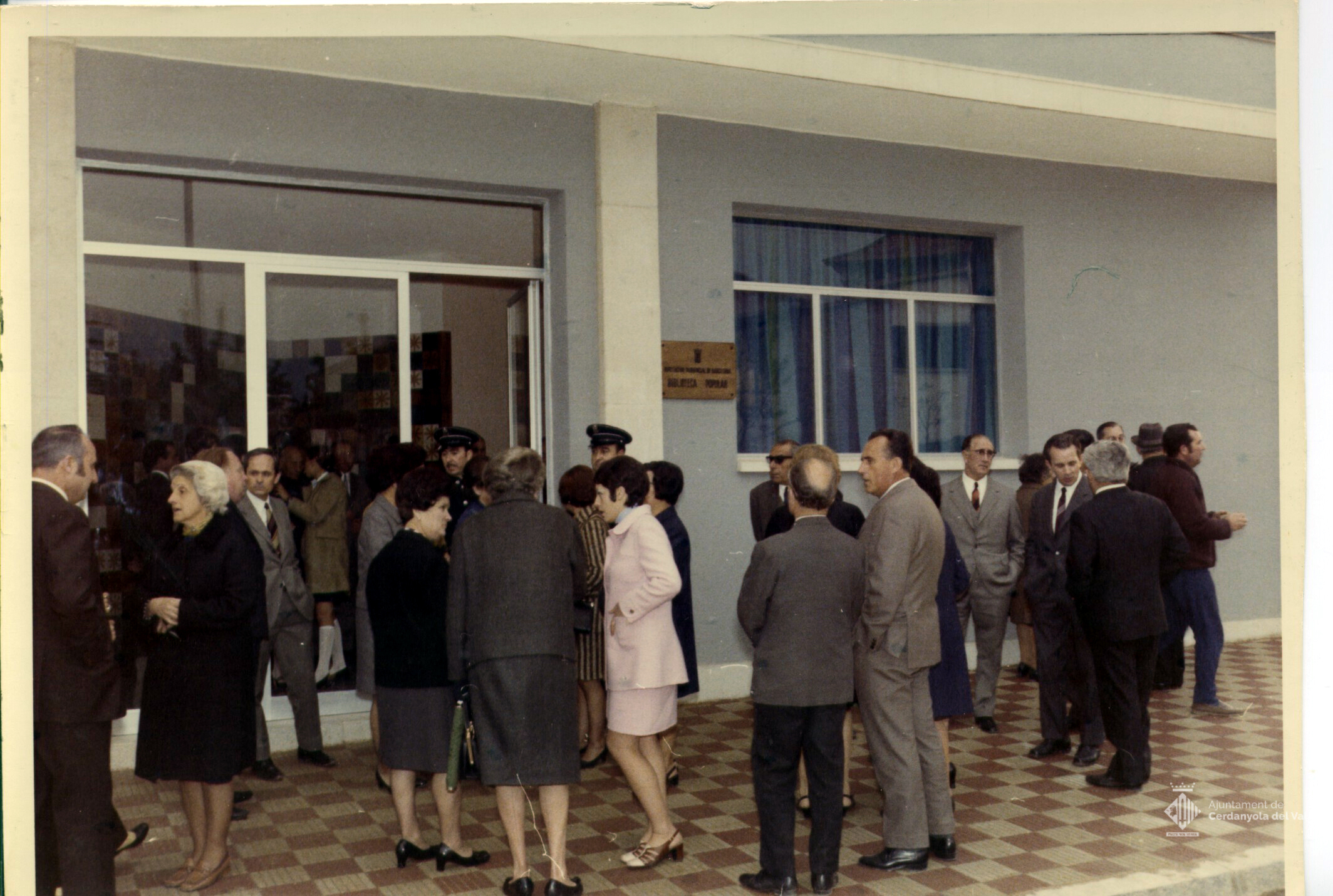 Inauguració de l'edifici de funcionaris de Cerdanyola del Vallès de l'avinguda de Sant Iscle propietat del ""Patronato Municipal de Viviendas para Funcionarios"" l'any 1970