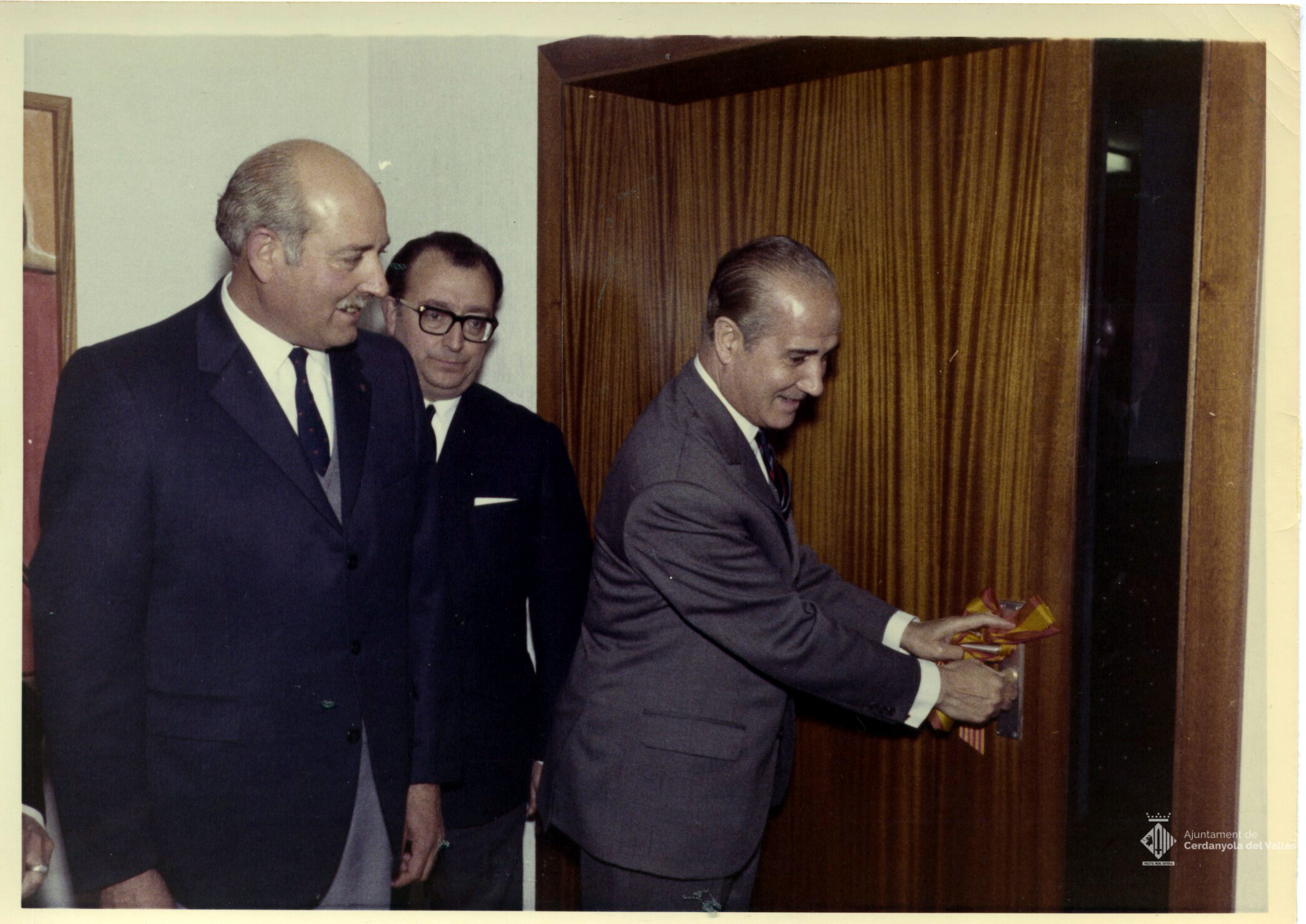 Inauguració de l'edifici de funcionaris de Cerdanyola del Vallès de l'avinguda de Sant Iscle propietat del ""Patronato Municipal de Viviendas para Funcionarios"" l'any 1970