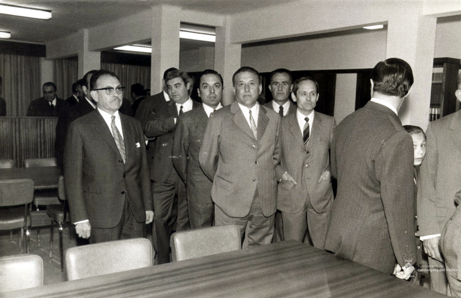 Inauguració de l'edifici de funcionaris de Cerdanyola del Vallès de l'avinguda de Sant Iscle propietat del ""Patronato Municipal de Viviendas para Funcionarios"" l'any 1970