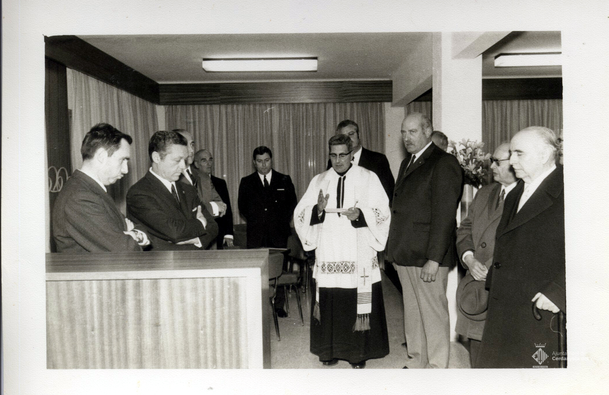 Inauguració de l'edifici de funcionaris de Cerdanyola del Vallès de l'avinguda de Sant Iscle propietat del ""Patronato Municipal de Viviendas para Funcionarios"" l'any 1970