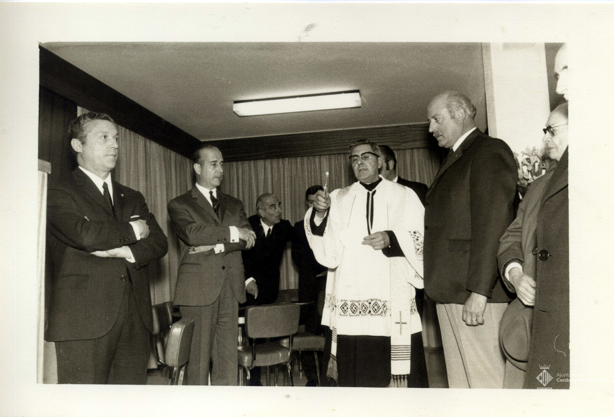Inauguració de l'edifici de funcionaris de Cerdanyola del Vallès de l'avinguda de Sant Iscle propietat del ""Patronato Municipal de Viviendas para Funcionarios"" l'any 1970