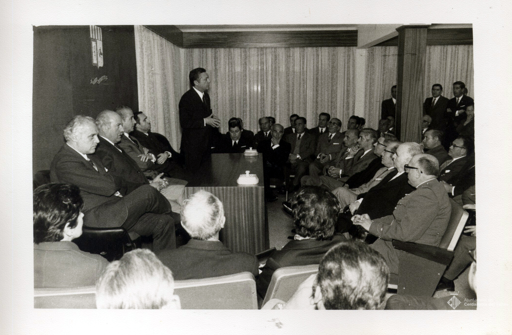 Inauguració de l'edifici de funcionaris de Cerdanyola del Vallès de l'avinguda de Sant Iscle propietat del ""Patronato Municipal de Viviendas para Funcionarios"" l'any 1970