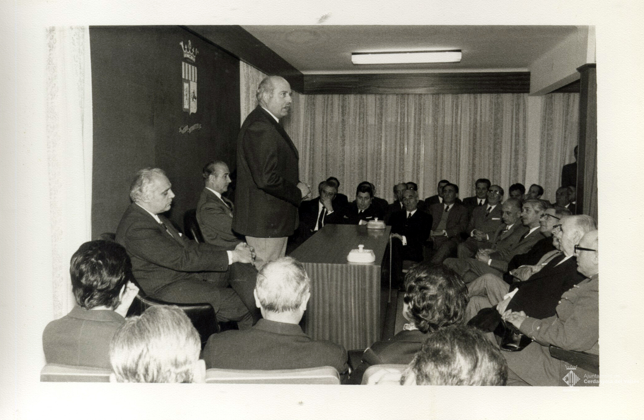 Inauguració de l'edifici de funcionaris de Cerdanyola del Vallès de l'avinguda de Sant Iscle propietat del ""Patronato Municipal de Viviendas para Funcionarios"" l'any 1970