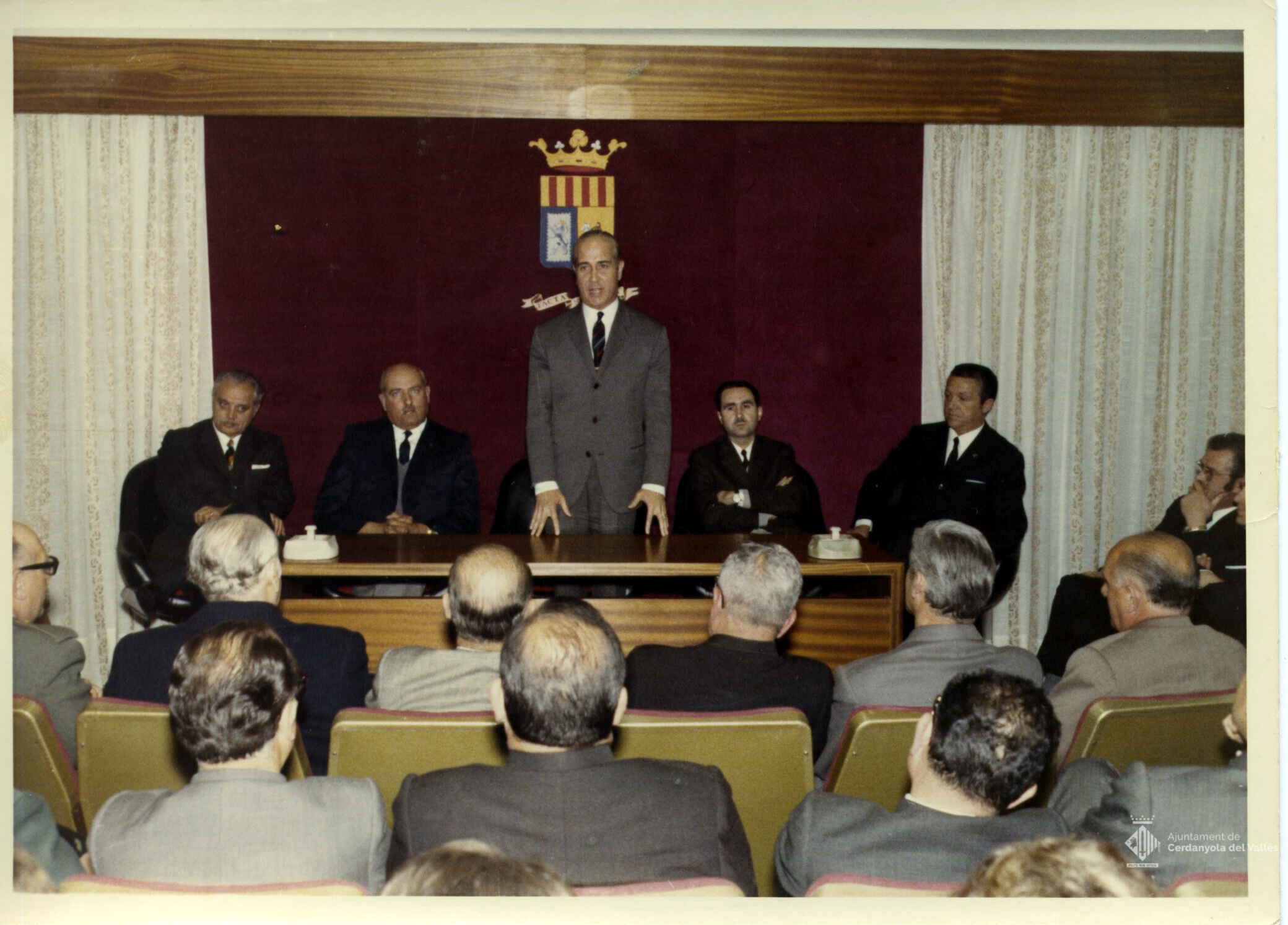 Inauguració de l'edifici de funcionaris de Cerdanyola del Vallès de l'avinguda de Sant Iscle propietat del ""Patronato Municipal de Viviendas para Funcionarios"" l'any 1970