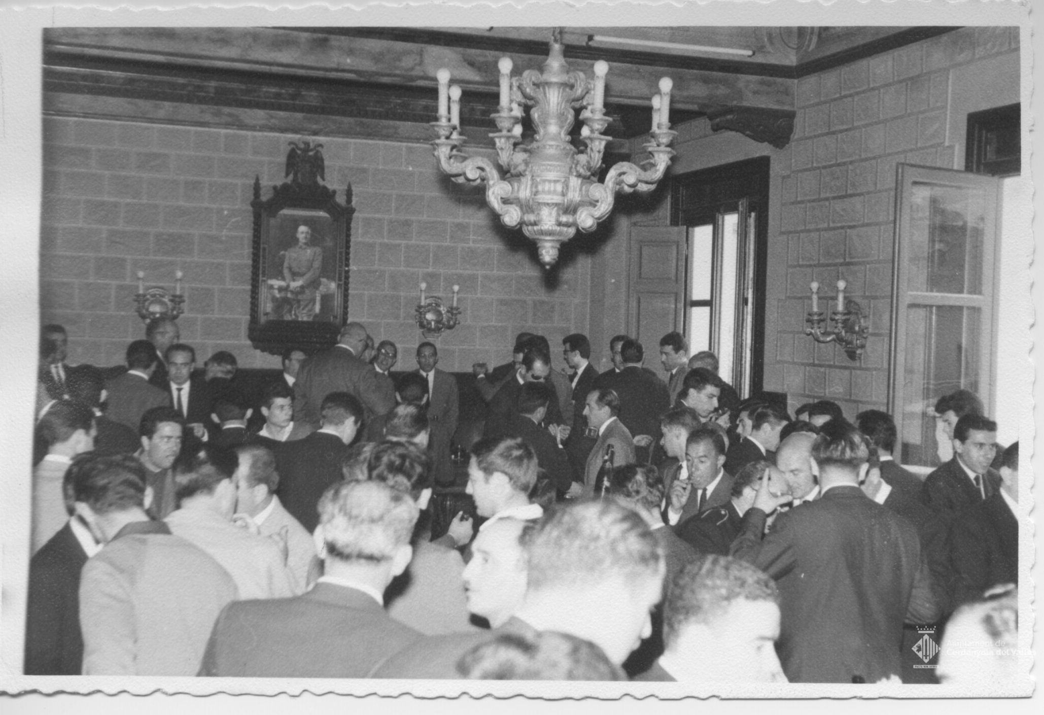 Acte protocolari no identificat a la sala del Ple de l'Ajuntament de Cerdanyola del Vallès presidit per l'alcalde Domingo Fatjó Sanmiquel la dècada de 1960
