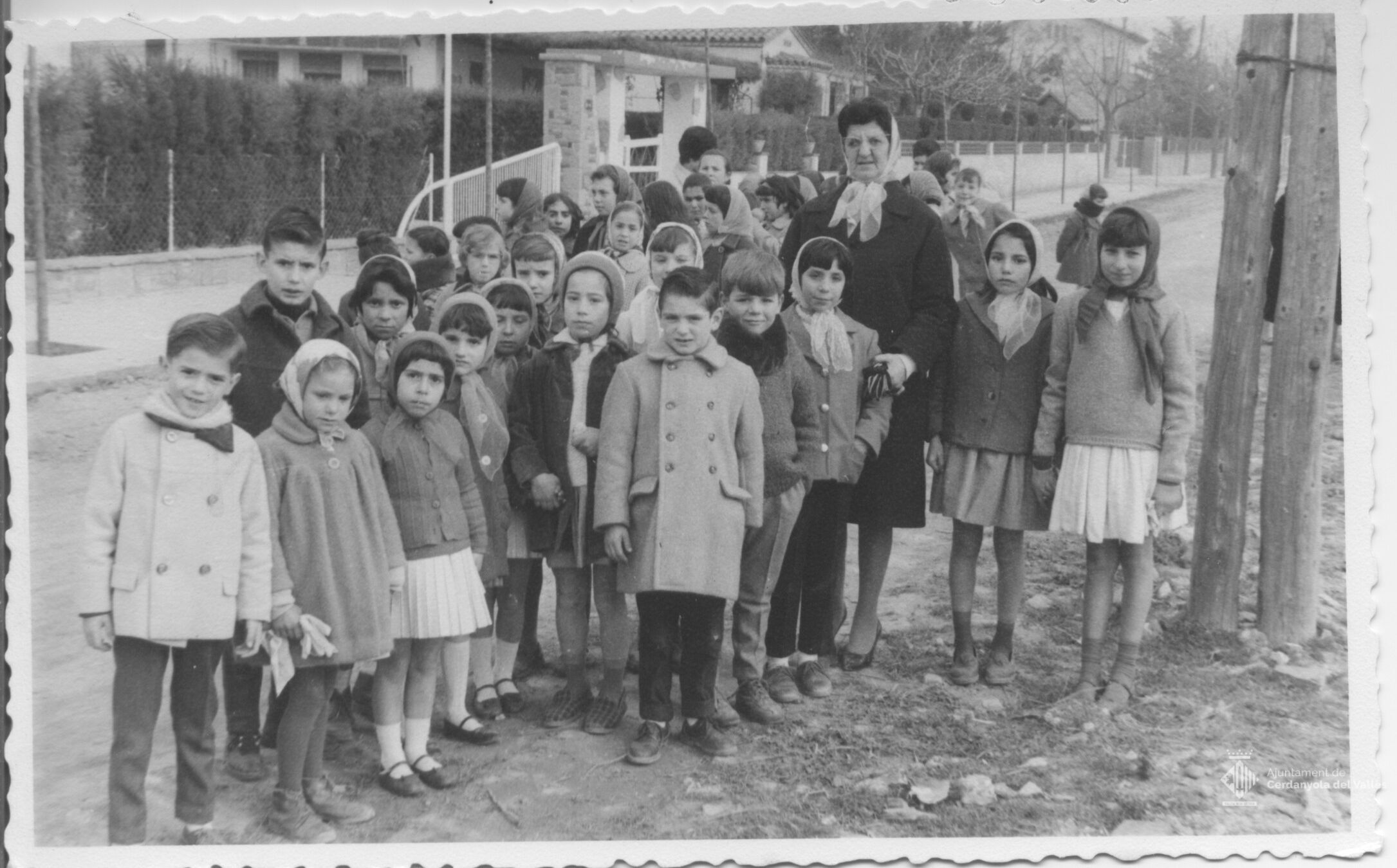 Berenar escolar a Cerdanyola del Vallès amb la presència de l'alcalde Domingo Fatjó Sanmiquel la dècada de 1960