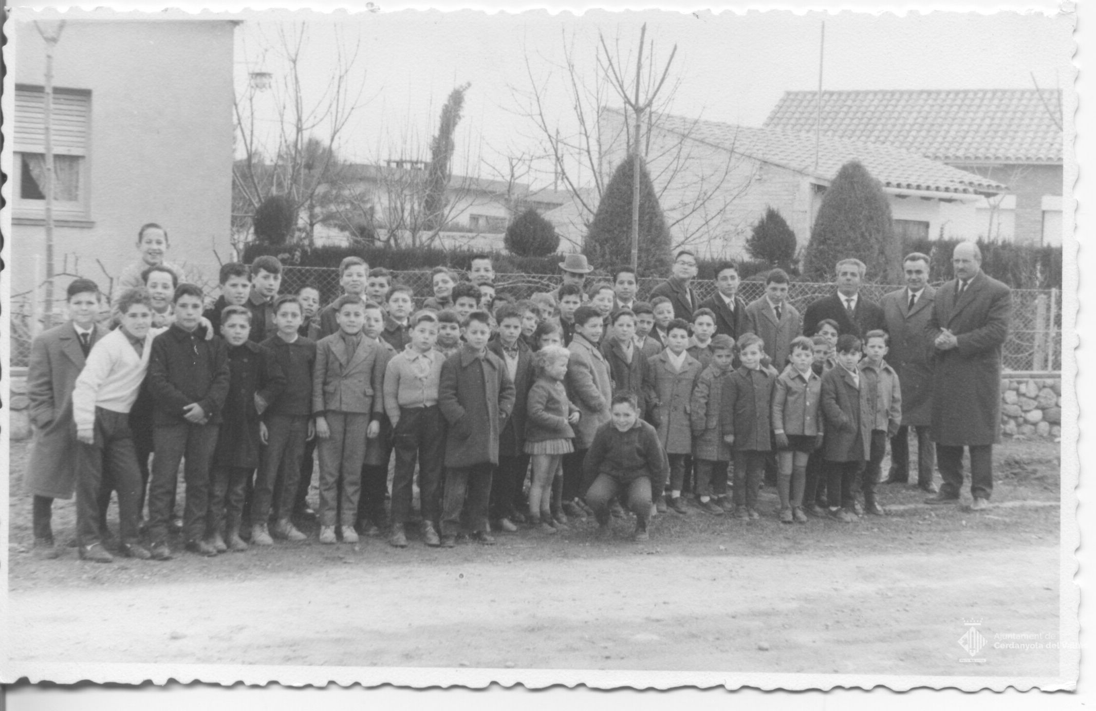 Berenar escolar a Cerdanyola del Vallès amb la presència de l'alcalde Domingo Fatjó Sanmiquel la dècada de 1960