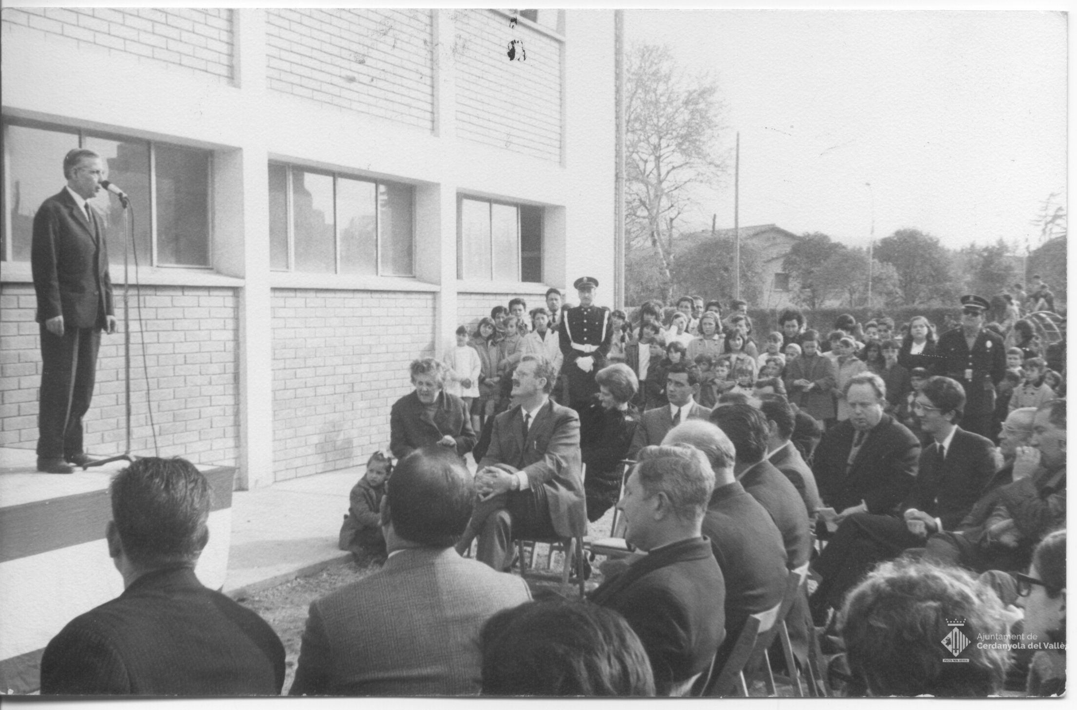 Escolars planten arbres a Cerdanyola del Vallès amb la presència de l'alcalde Domingo Fatjó Sanmiquel la dècada de 1960