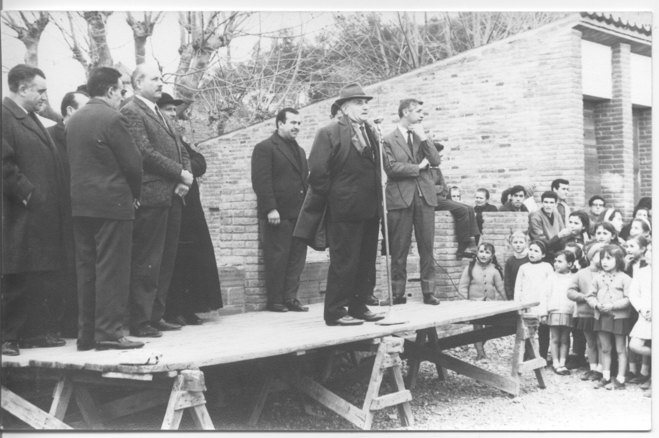 Escolars planten arbres a Cerdanyola del Vallès amb la presència de l'alcalde Domingo Fatjó Sanmiquel la dècada de 1960
