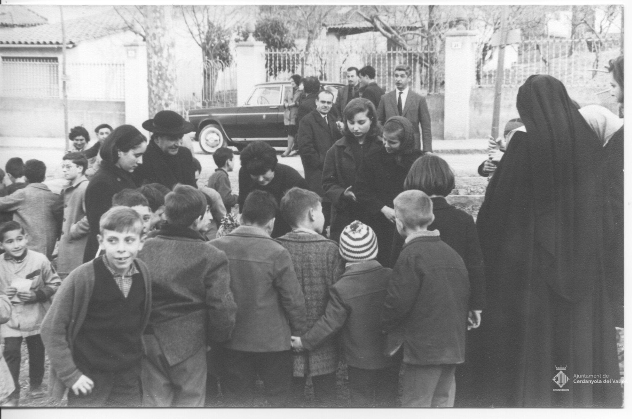 Escolars planten arbres a Cerdanyola del Vallès amb la presència de l'alcalde Domingo Fatjó Sanmiquel la dècada de 1960