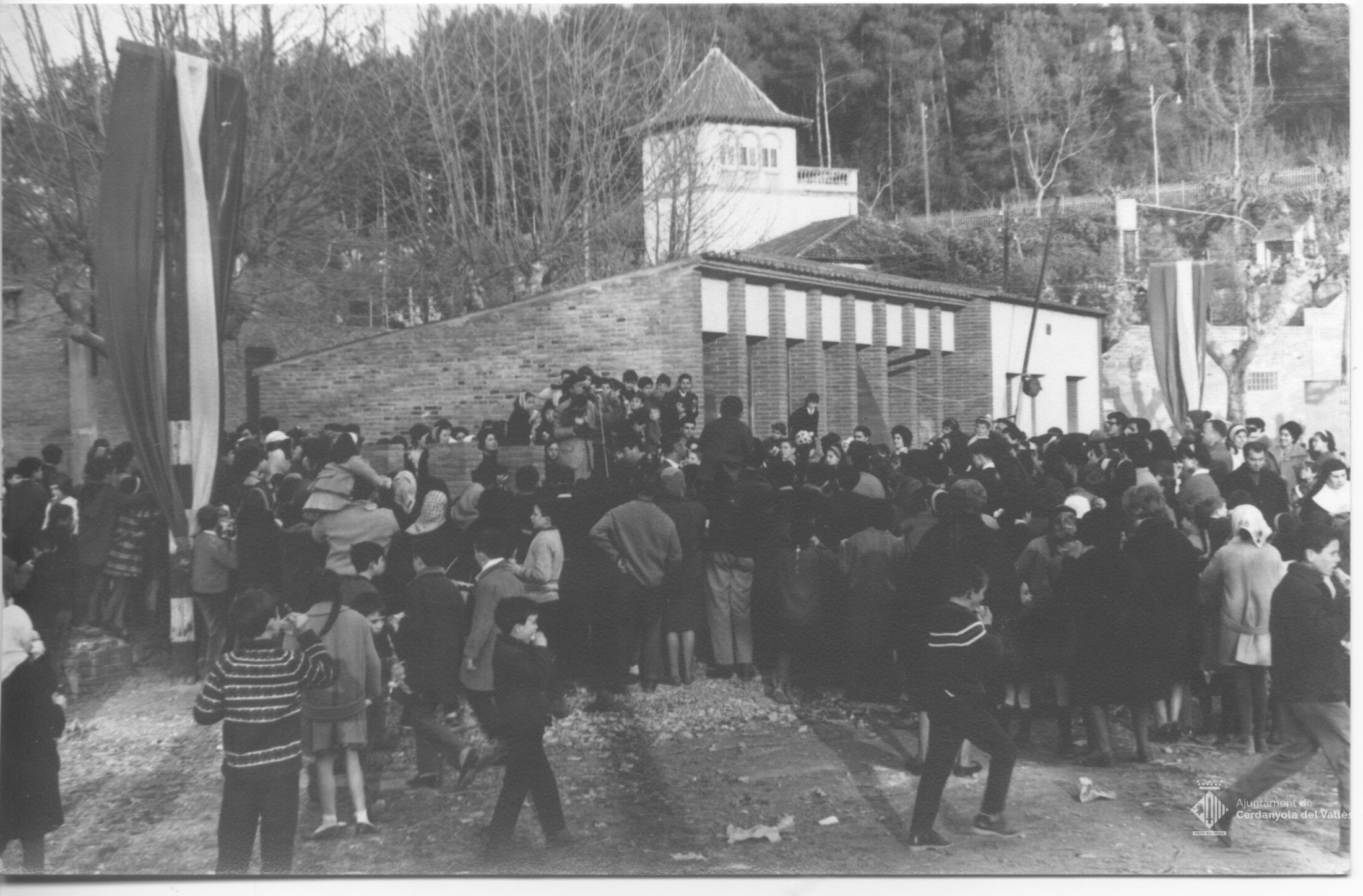 Escolars planten arbres a Cerdanyola del Vallès amb la presència de l'alcalde Domingo Fatjó Sanmiquel la dècada de 1960