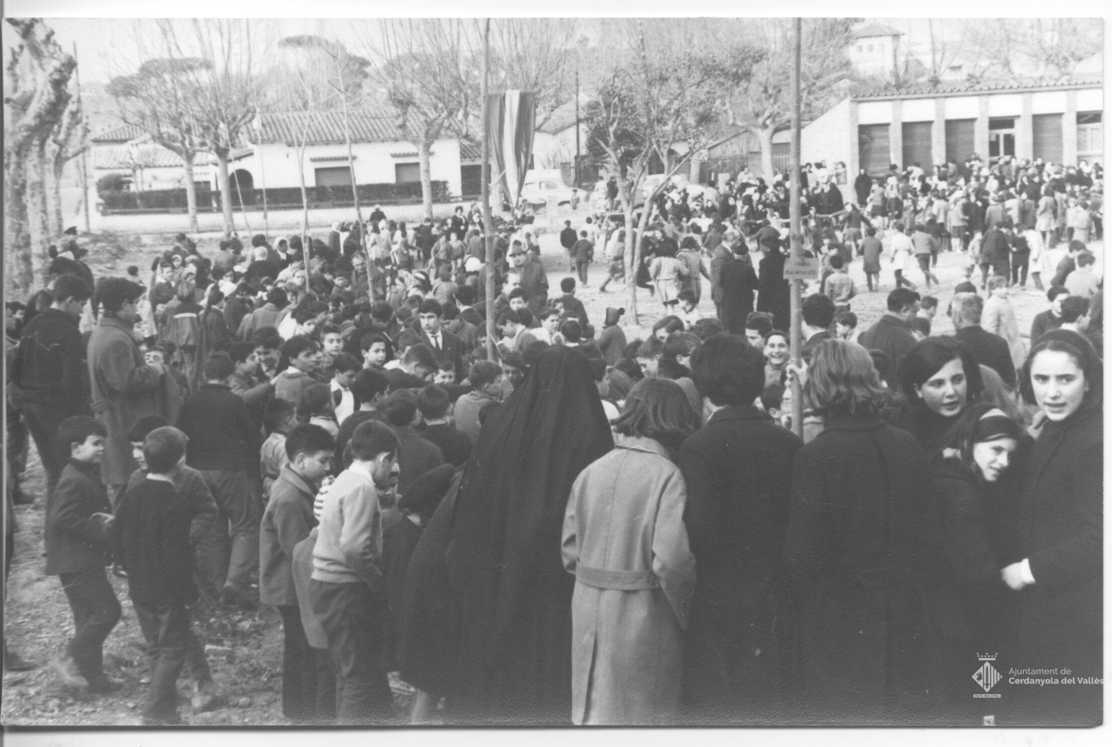 Escolars planten arbres a Cerdanyola del Vallès amb la presència de l'alcalde Domingo Fatjó Sanmiquel la dècada de 1960