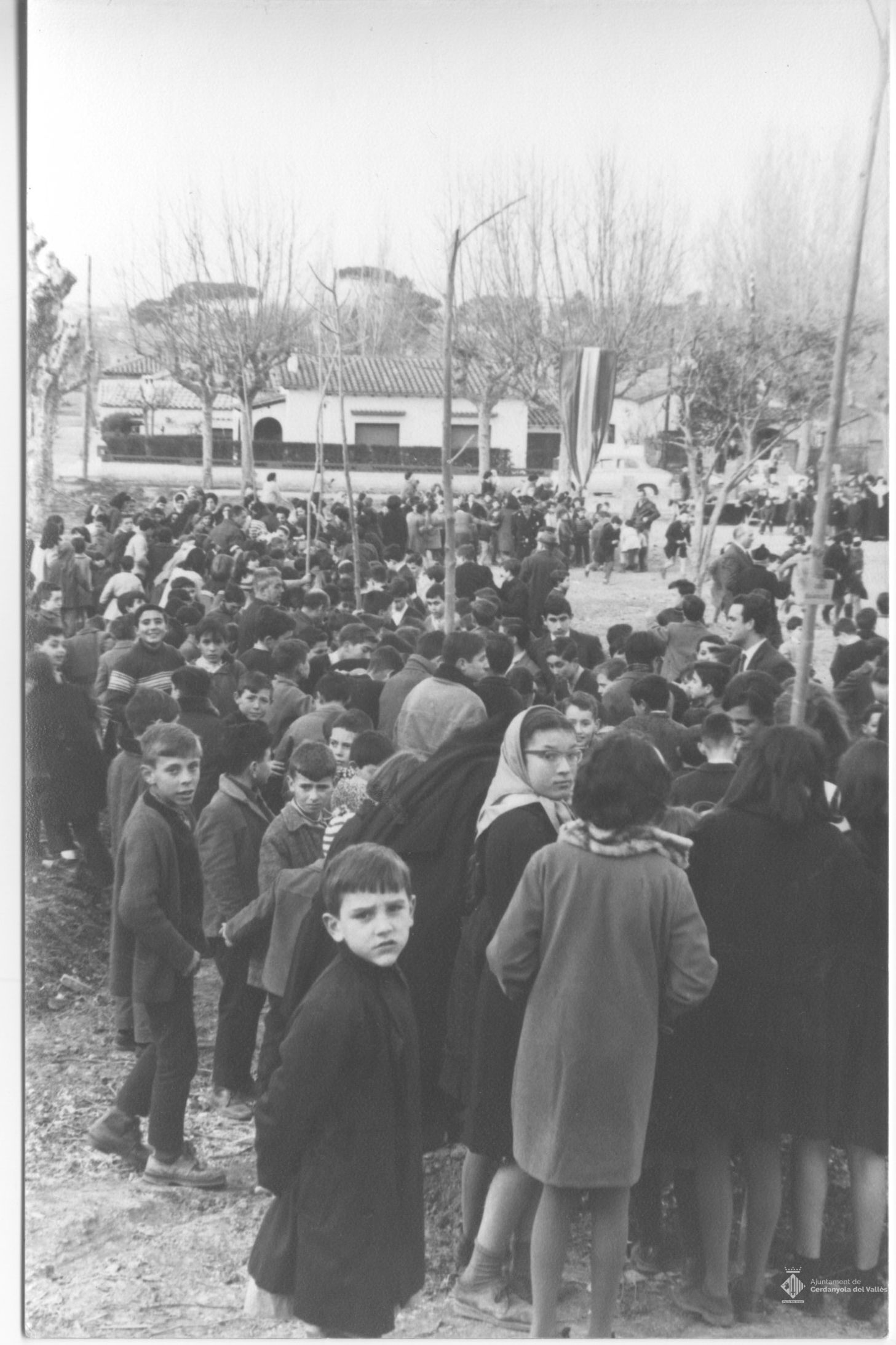 Escolars planten arbres a Cerdanyola del Vallès amb la presència de l'alcalde Domingo Fatjó Sanmiquel la dècada de 1960