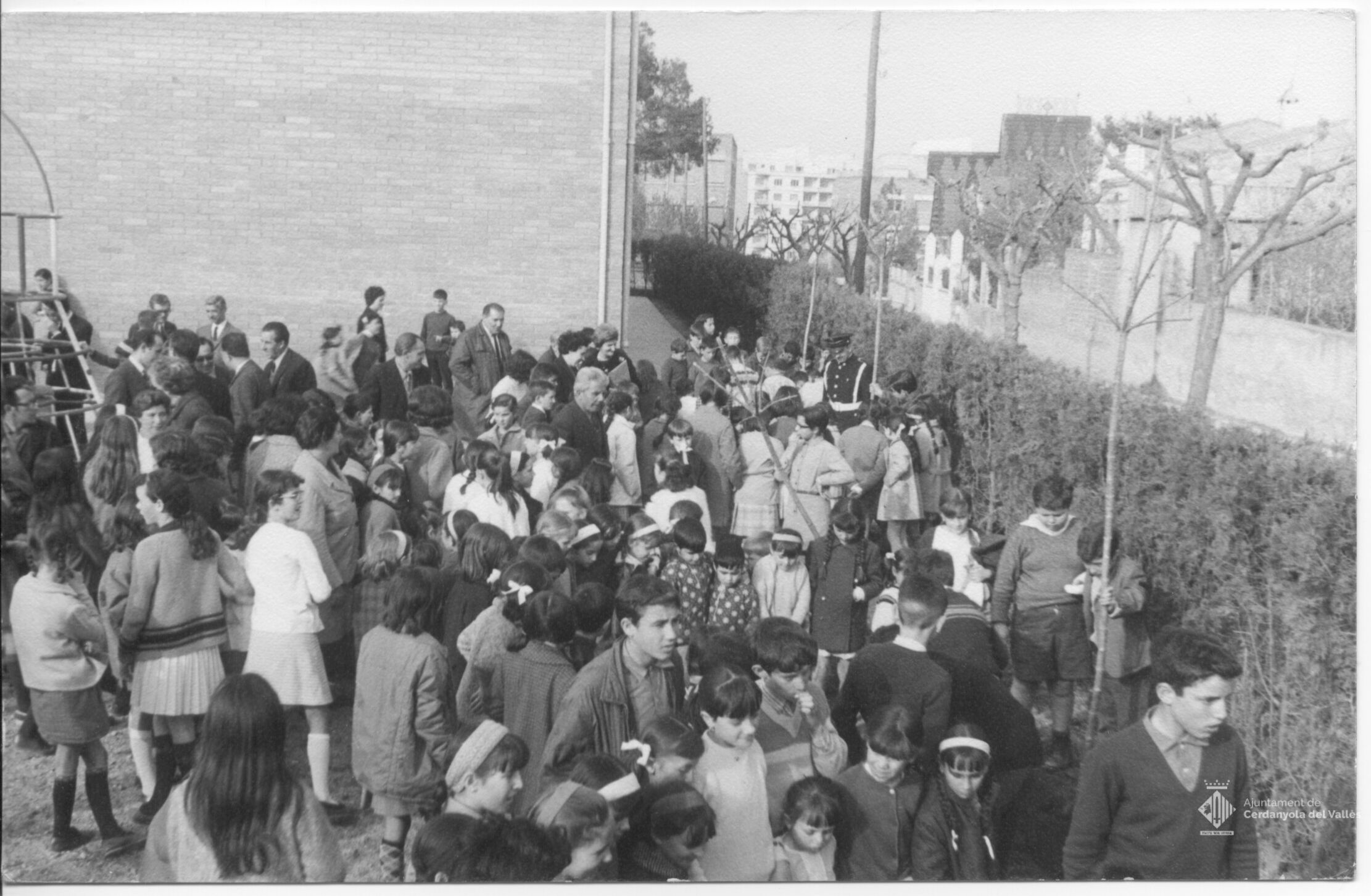 Escolars planten arbres a Cerdanyola del Vallès amb la presència de l'alcalde Domingo Fatjó Sanmiquel la dècada de 1960