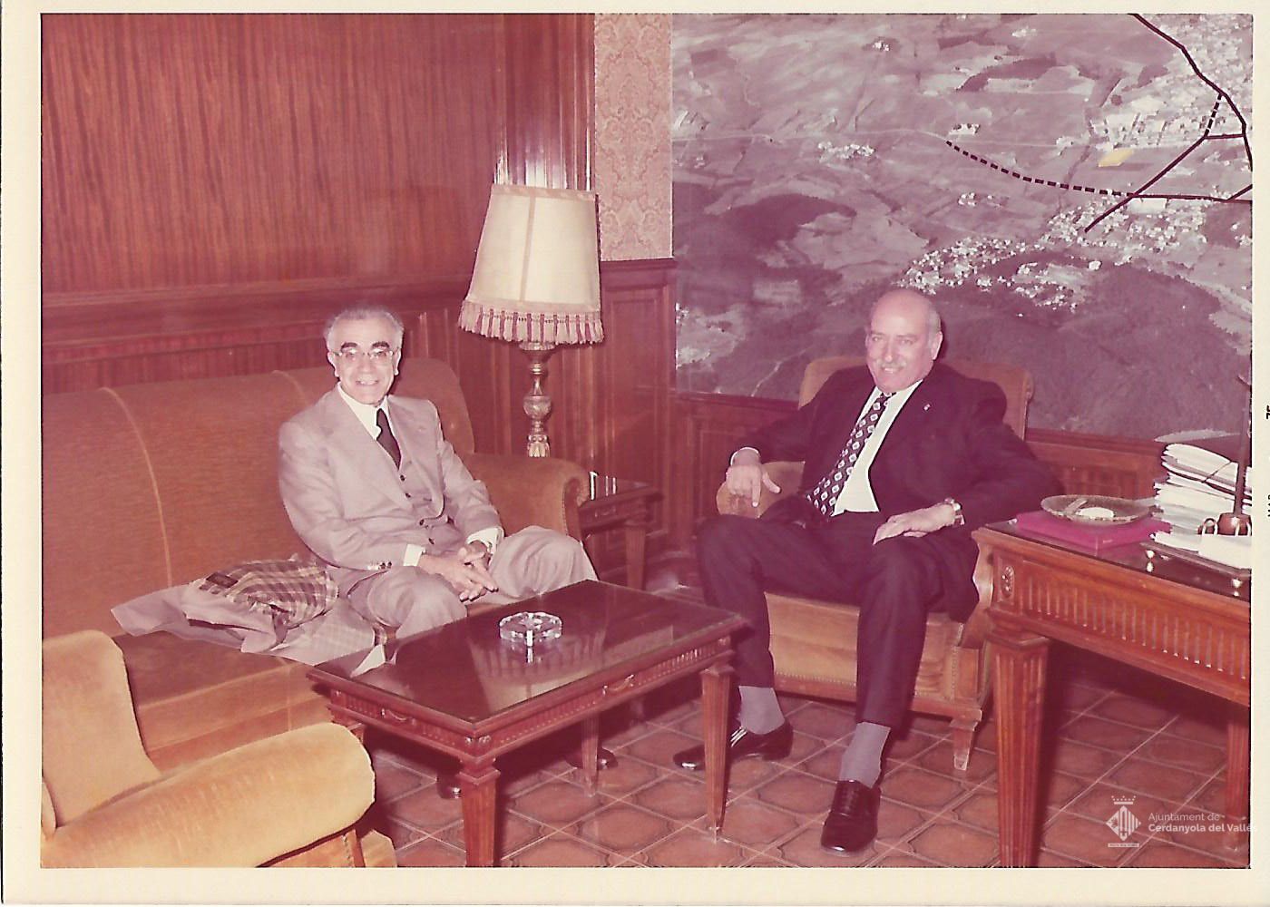 Acte d'homenatge a la sala del Ple de l'Ajuntament de Cerdanyola del Vallès presidit per l'alcalde Domingo Fatjó Sanmiquel per la jubilació del secretari Justiniano Hidalgo Barriuso el 26 de març de 1975