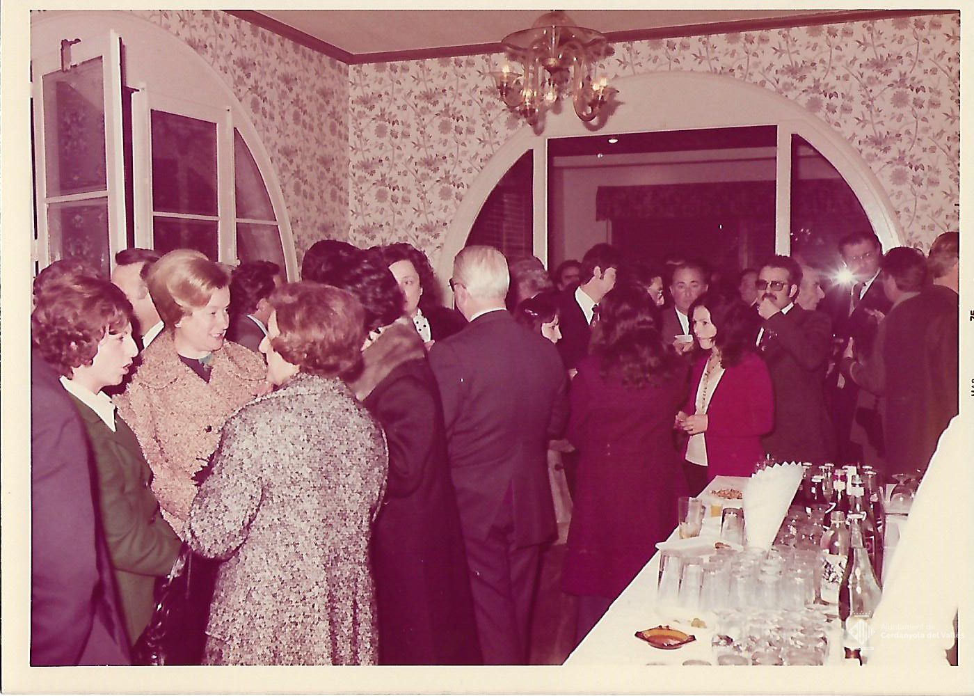 Acte d'homenatge a la sala del Ple de l'Ajuntament de Cerdanyola del Vallès presidit per l'alcalde Domingo Fatjó Sanmiquel per la jubilació del secretari Justiniano Hidalgo Barriuso el 26 de març de 1975