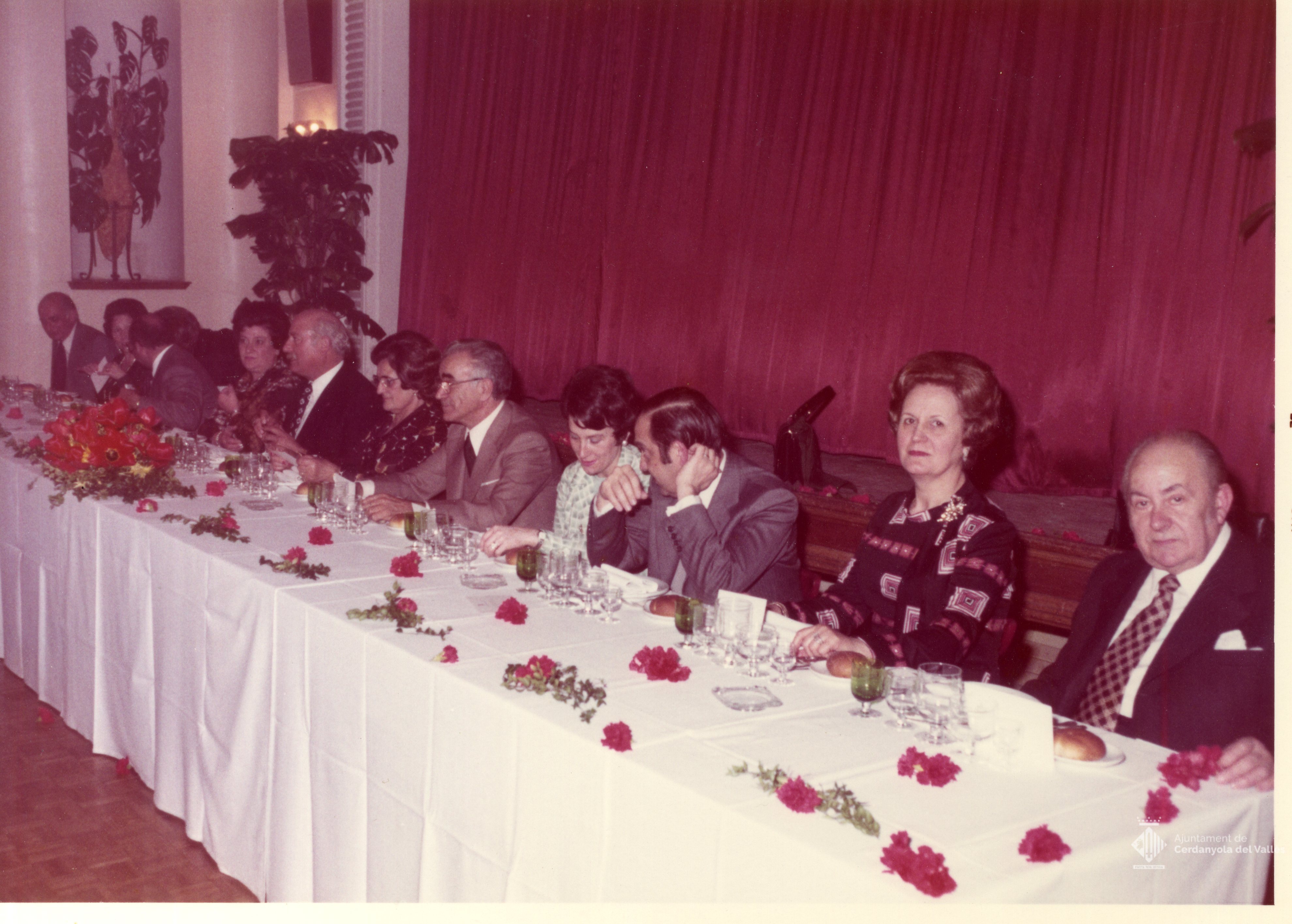 Sopar d'homenatge presidit per l'alcalde Domingo Fatjó Sanmiquel per la jubilació del secretari Justiniano Hidalgo Barriuso el 26 de març de 1975