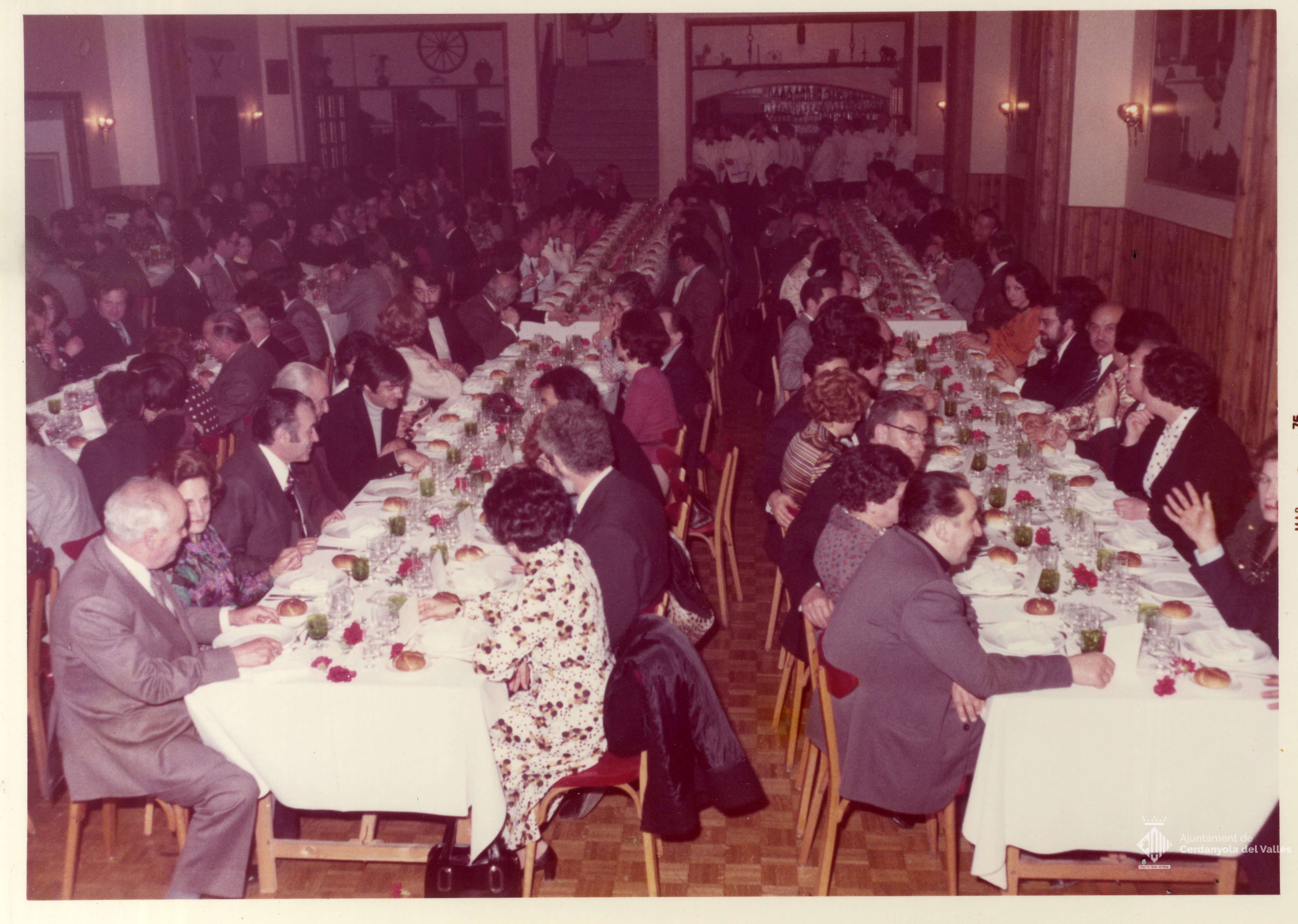 Sopar d'homenatge presidit per l'alcalde Domingo Fatjó Sanmiquel per la jubilació del secretari Justiniano Hidalgo Barriuso el 26 de març de 1975