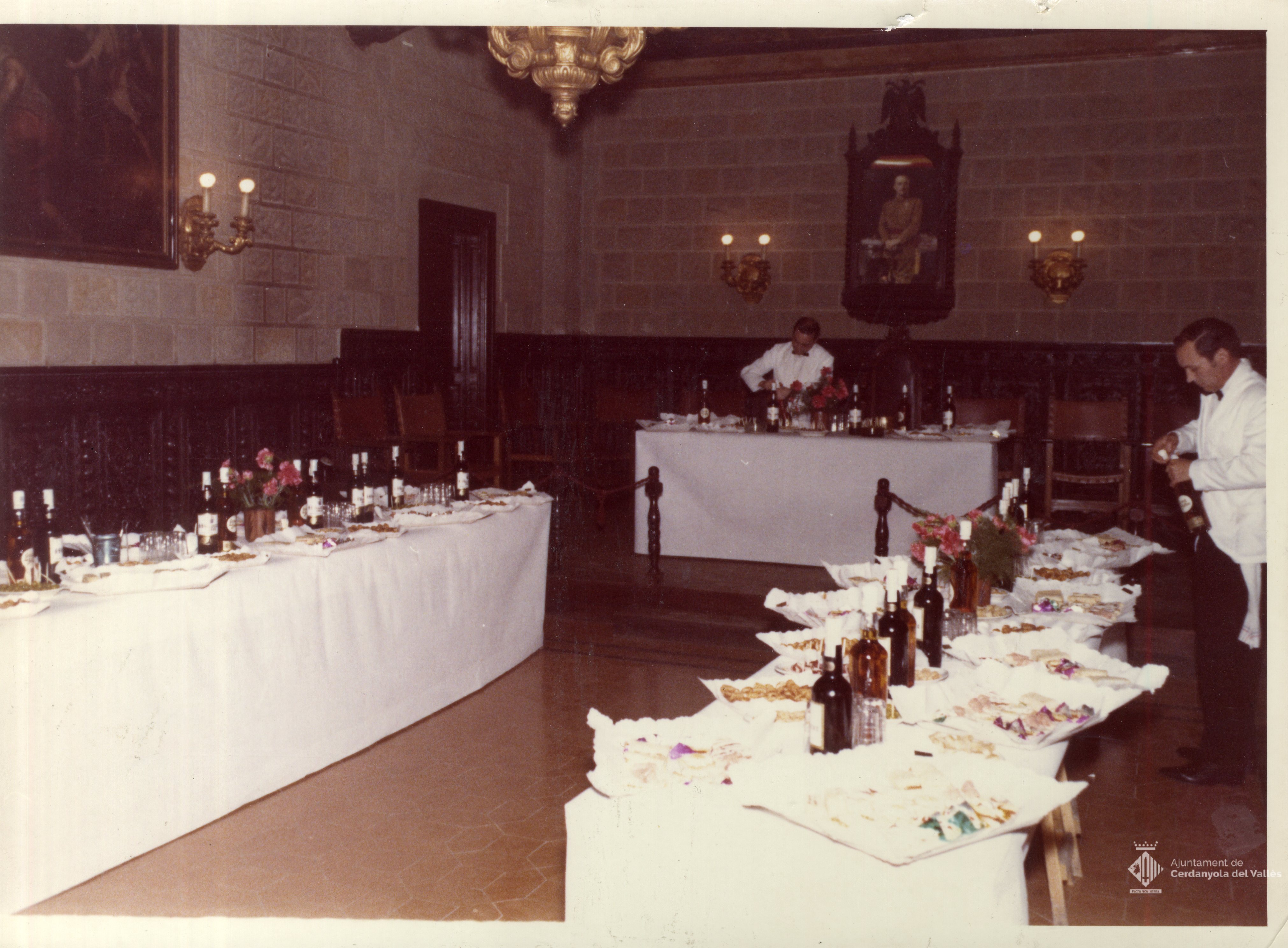 Apat no identificat celebrat a la sala del Ple de Ajuntament de Cerdanyola del Vallès en algun moment del mandat de l'alcalde Domingo Fatjó Sanmiquel (1959-1976)