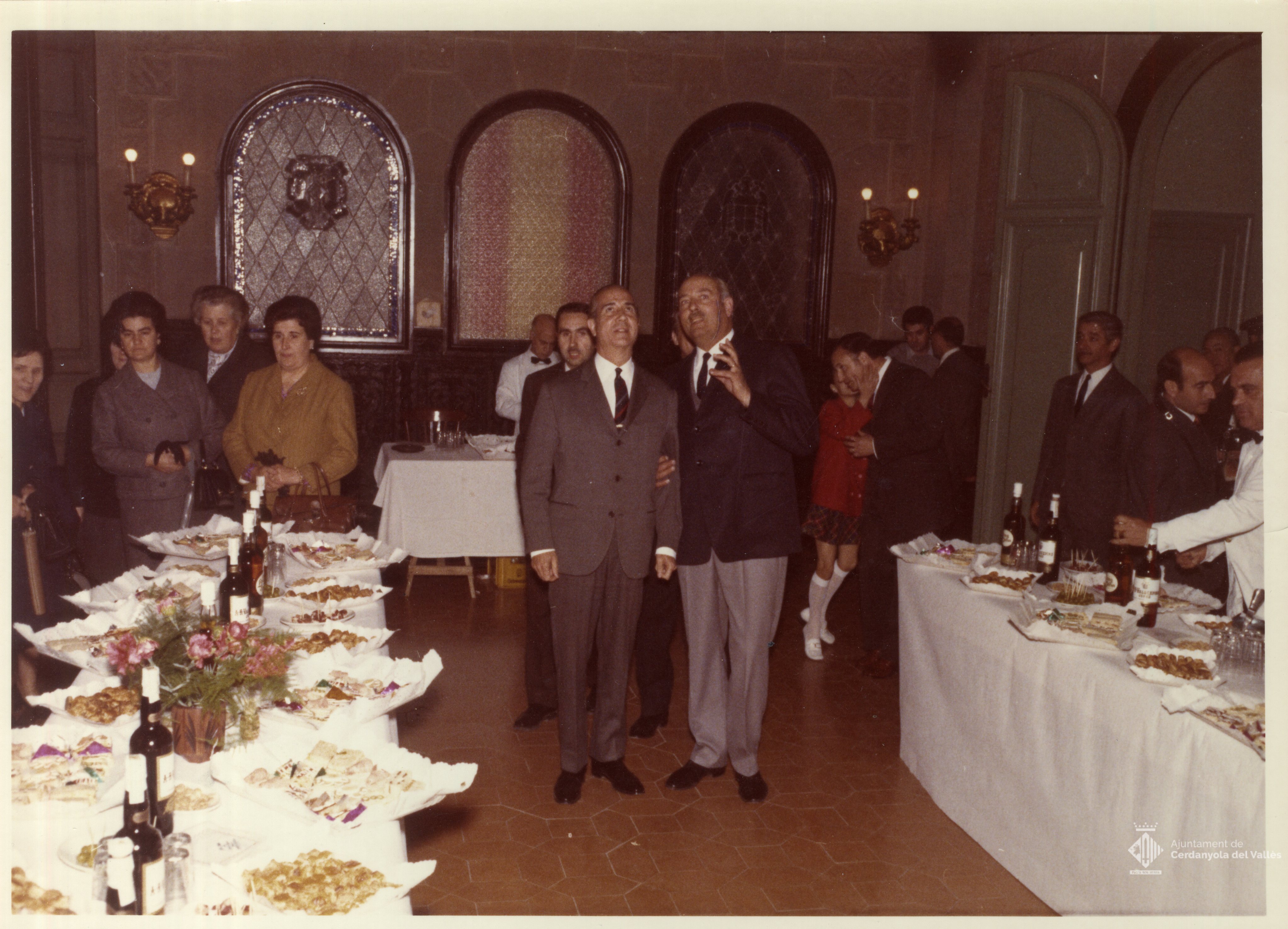 Apat no identificat celebrat a la sala del Ple de Ajuntament de Cerdanyola del Vallès en algun moment del mandat de l'alcalde Domingo Fatjó Sanmiquel (1959-1976)