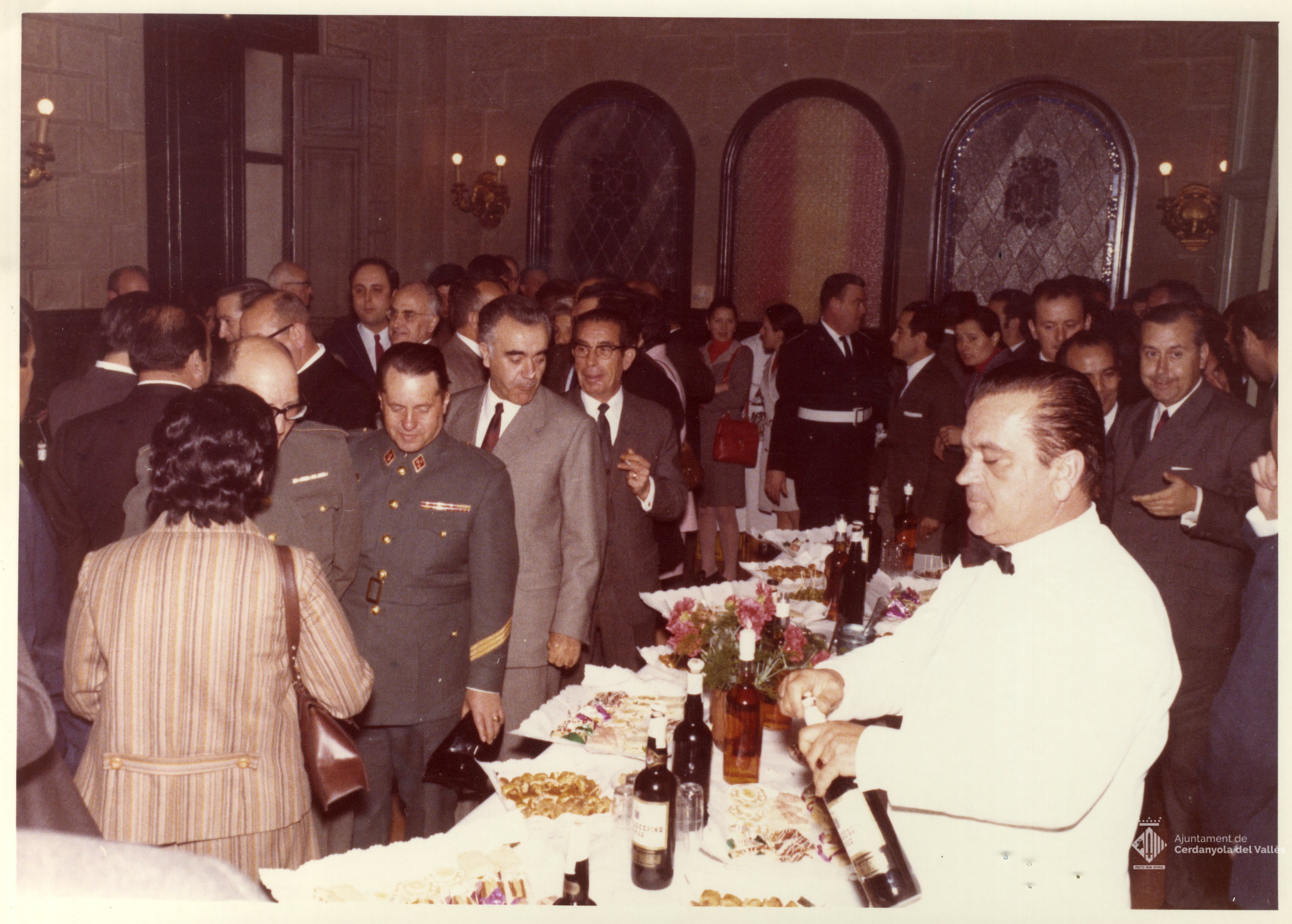 Apat no identificat celebrat a la sala del Ple de Ajuntament de Cerdanyola del Vallès en algun moment del mandat de l'alcalde Domingo Fatjó Sanmiquel (1959-1976)
