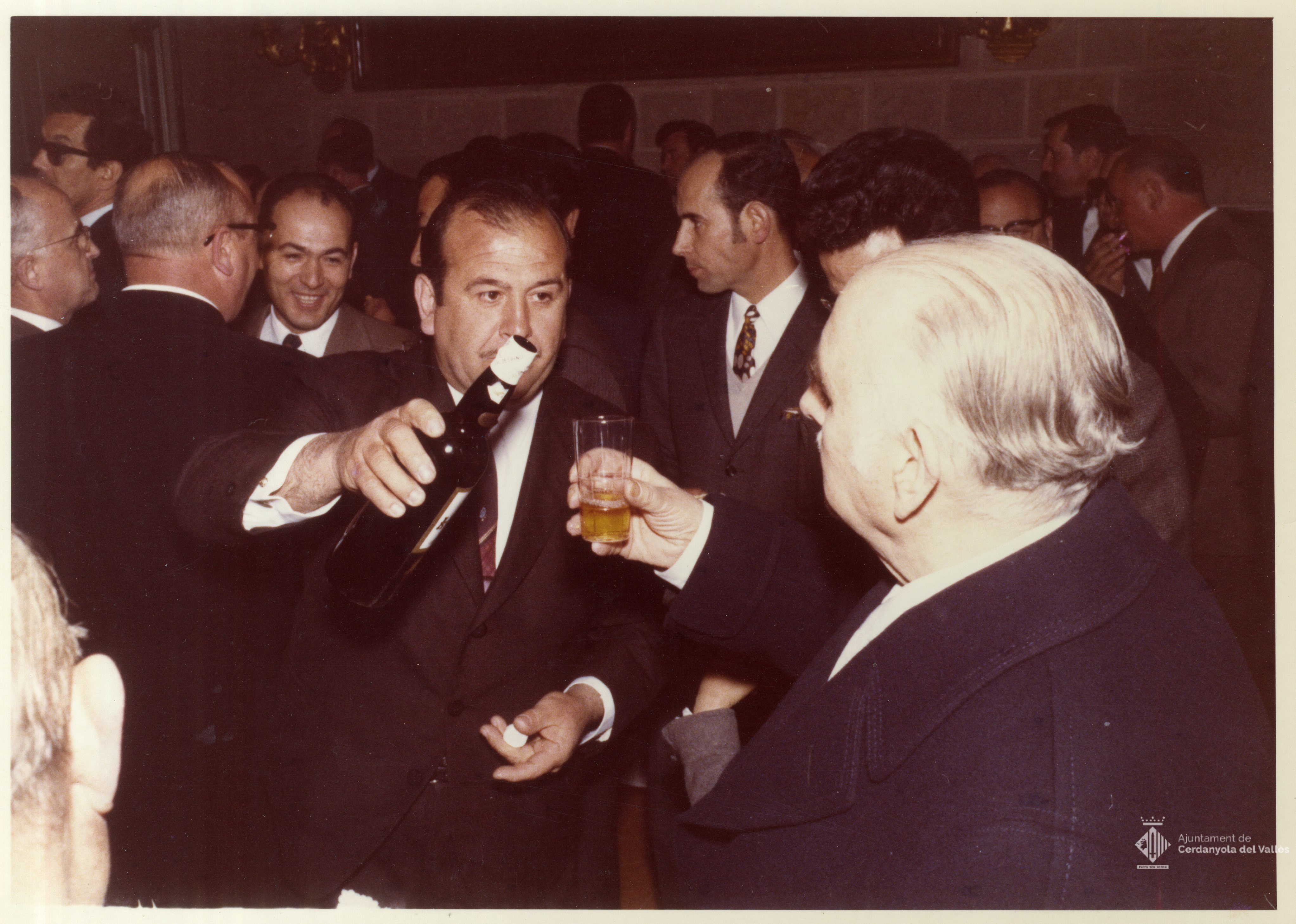 Apat no identificat celebrat a la sala del Ple de Ajuntament de Cerdanyola del Vallès en algun moment del mandat de l'alcalde Domingo Fatjó Sanmiquel (1959-1976)