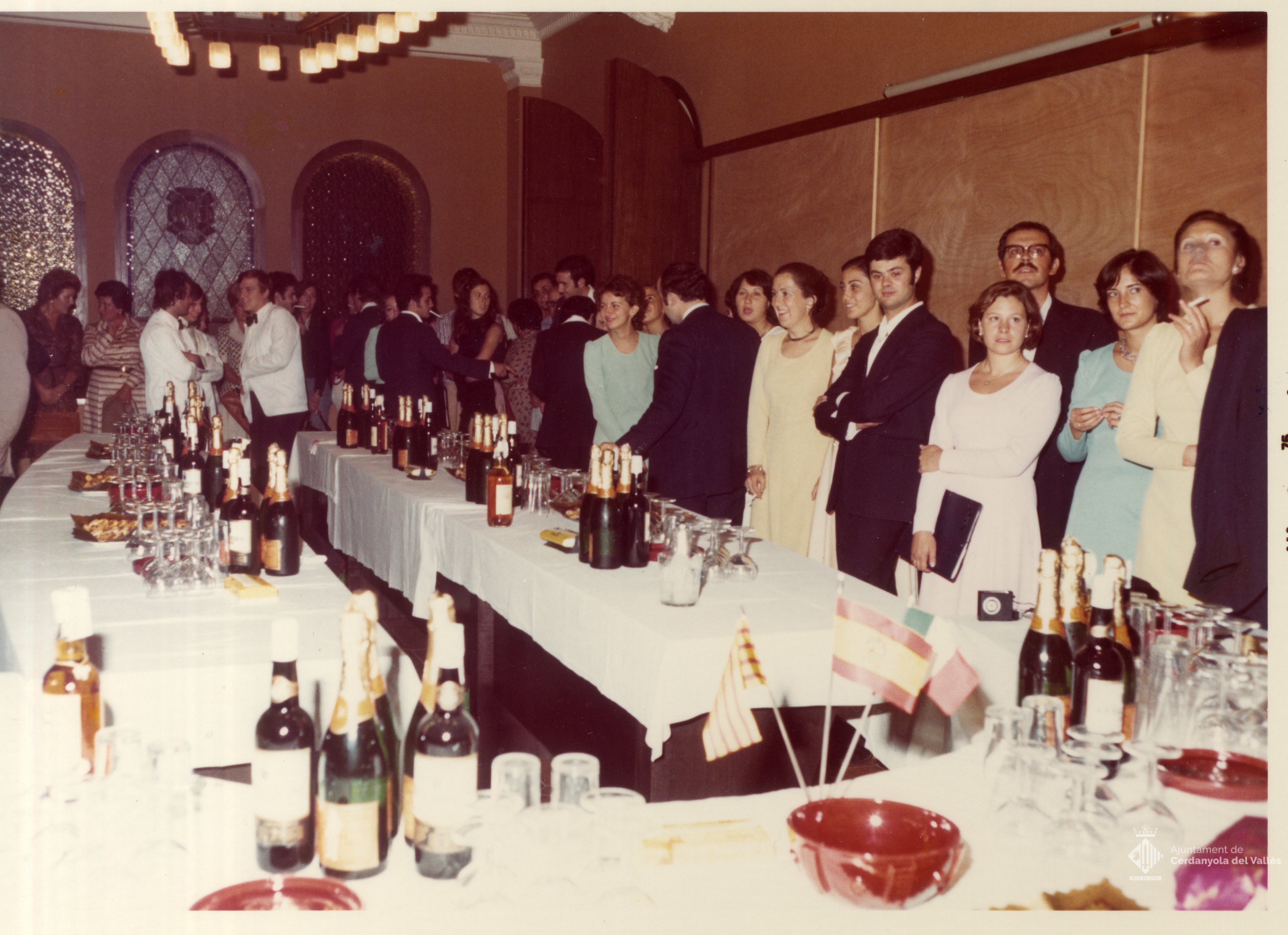 Apat no identificat celebrat a la sala del Ple de Ajuntament de Cerdanyola del Vallès en algun moment del mandat de l'alcalde Domingo Fatjó Sanmiquel (1959-1976)