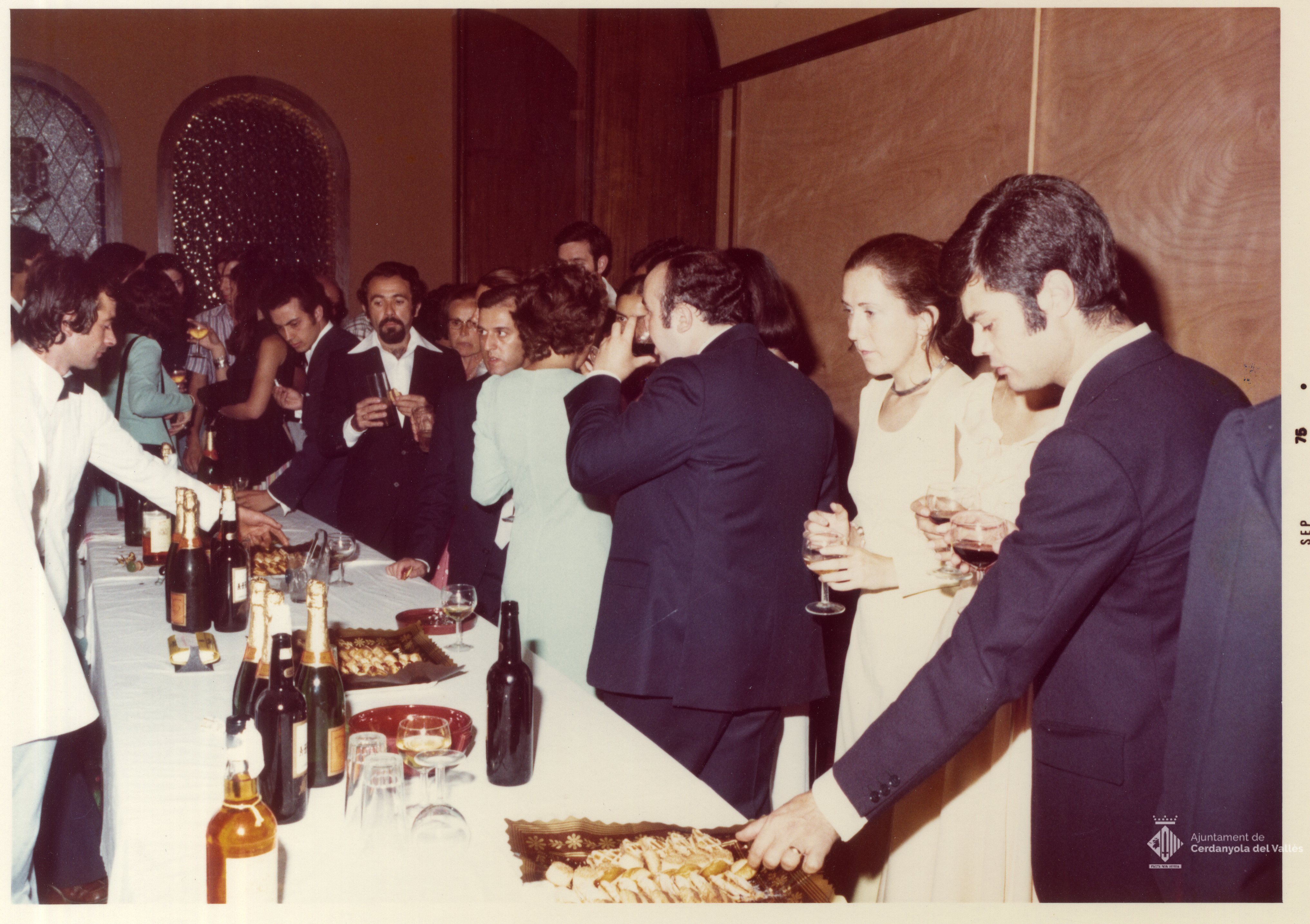Apat no identificat celebrat a la sala del Ple de Ajuntament de Cerdanyola del Vallès en algun moment del mandat de l'alcalde Domingo Fatjó Sanmiquel (1959-1976)