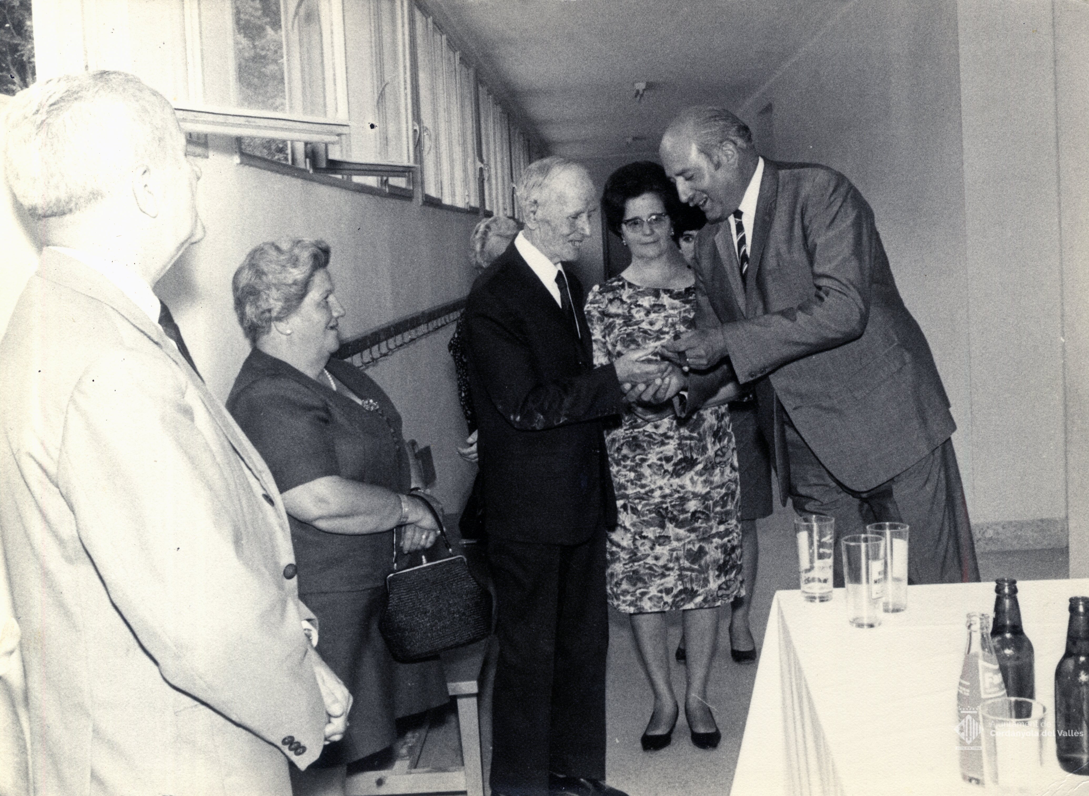 Acte d'homenatge a la vellesa presidit per l'alcalde de Cerdanyola del Vallès Domingo Fatjó Sanmiquel durant algun moment del seu mandat (1959-1976)