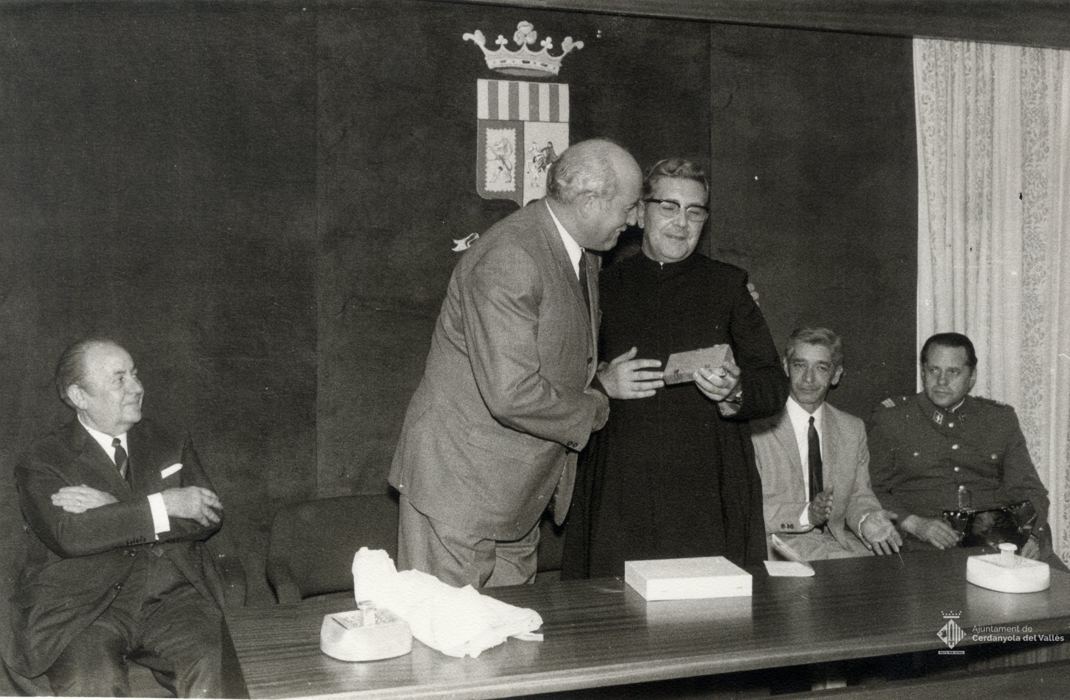 Acte d'homenatge dedicat a Mossèn Juan Gili Doria, réctor de la parròquia de Sant Martí de Cerdanyola del Vallès, dut a terme durant algun moment del mandat de l'alcalde Domingo Fatjó Sanmiquel (1959-1976)
