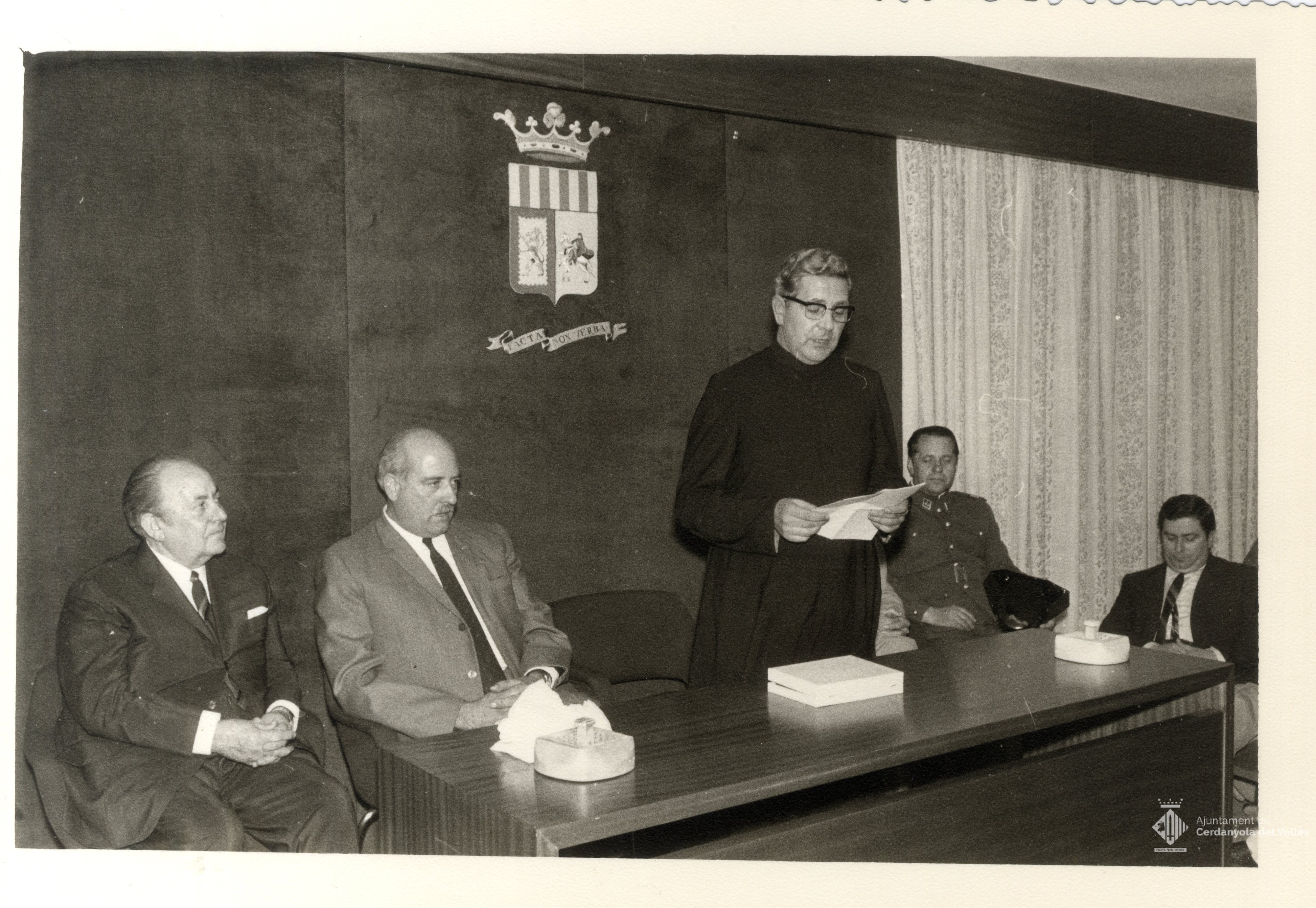Acte d'homenatge dedicat a Mossèn Juan Gili Doria, réctor de la parròquia de Sant Martí de Cerdanyola del Vallès, dut a terme durant algun moment del mandat de l'alcalde Domingo Fatjó Sanmiquel (1959-1976)