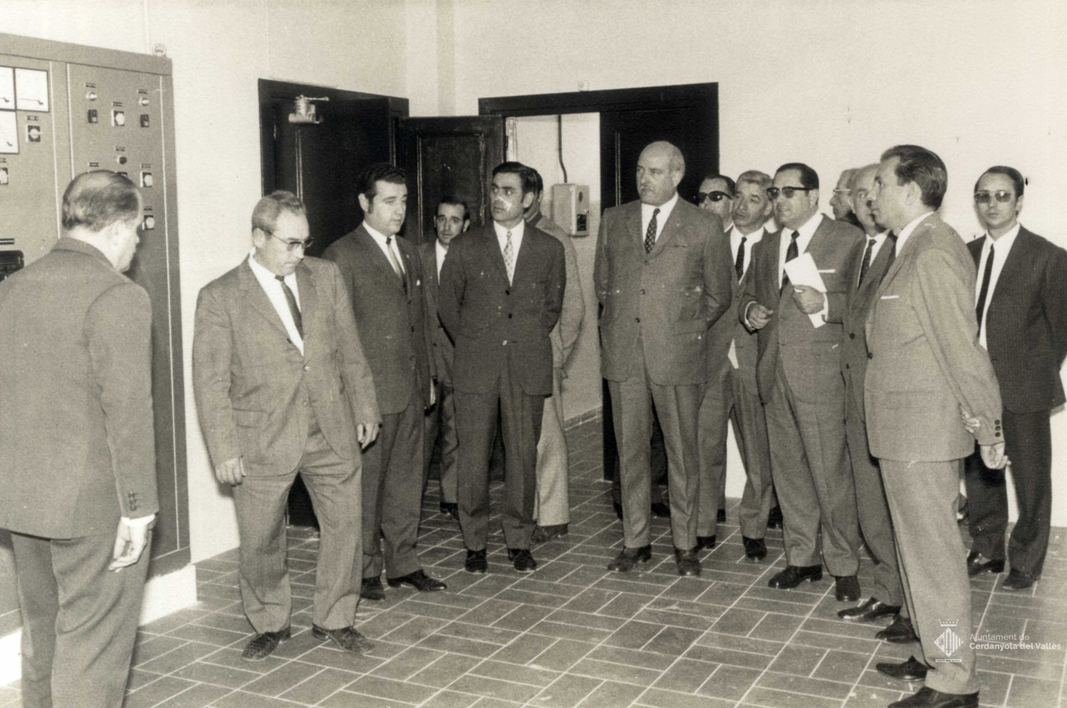 Inauguració de central automàtica de Telefònica a Cerdanyola del Vallès en algun moment del mandat de l'alcalde Domingo Fatjó Sanmiquel (1959-1976)