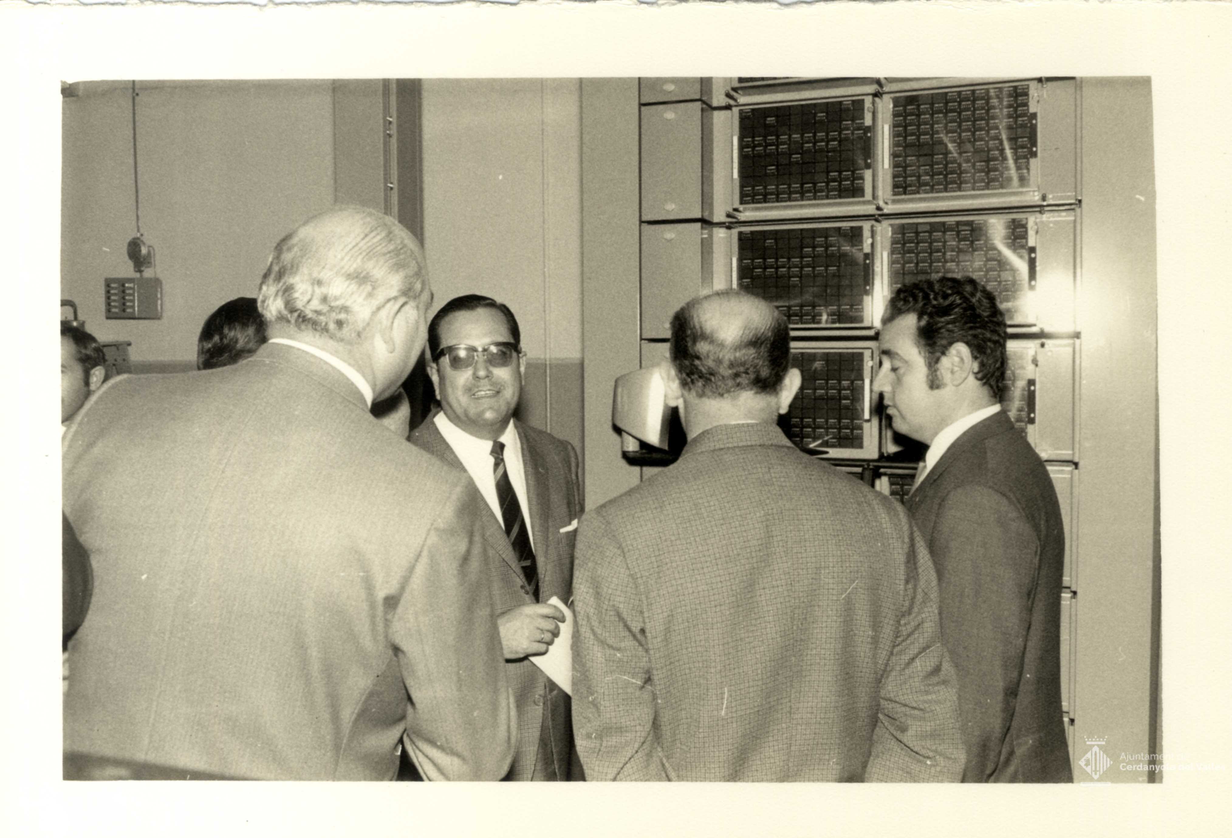 Inauguració de central automàtica de Telefònica a Cerdanyola del Vallès en algun moment del mandat de l'alcalde Domingo Fatjó Sanmiquel (1959-1976)