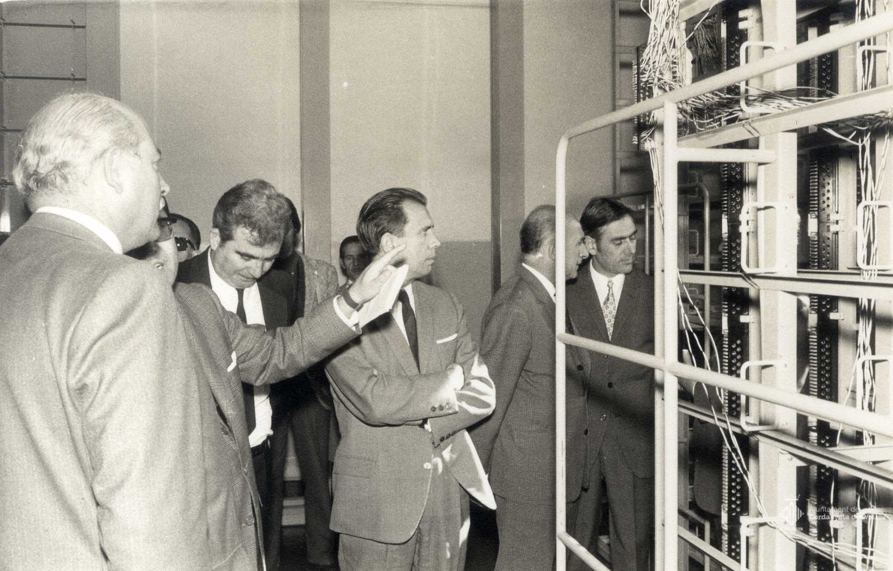 Inauguració de central automàtica de Telefònica a Cerdanyola del Vallès en algun moment del mandat de l'alcalde Domingo Fatjó Sanmiquel (1959-1976)