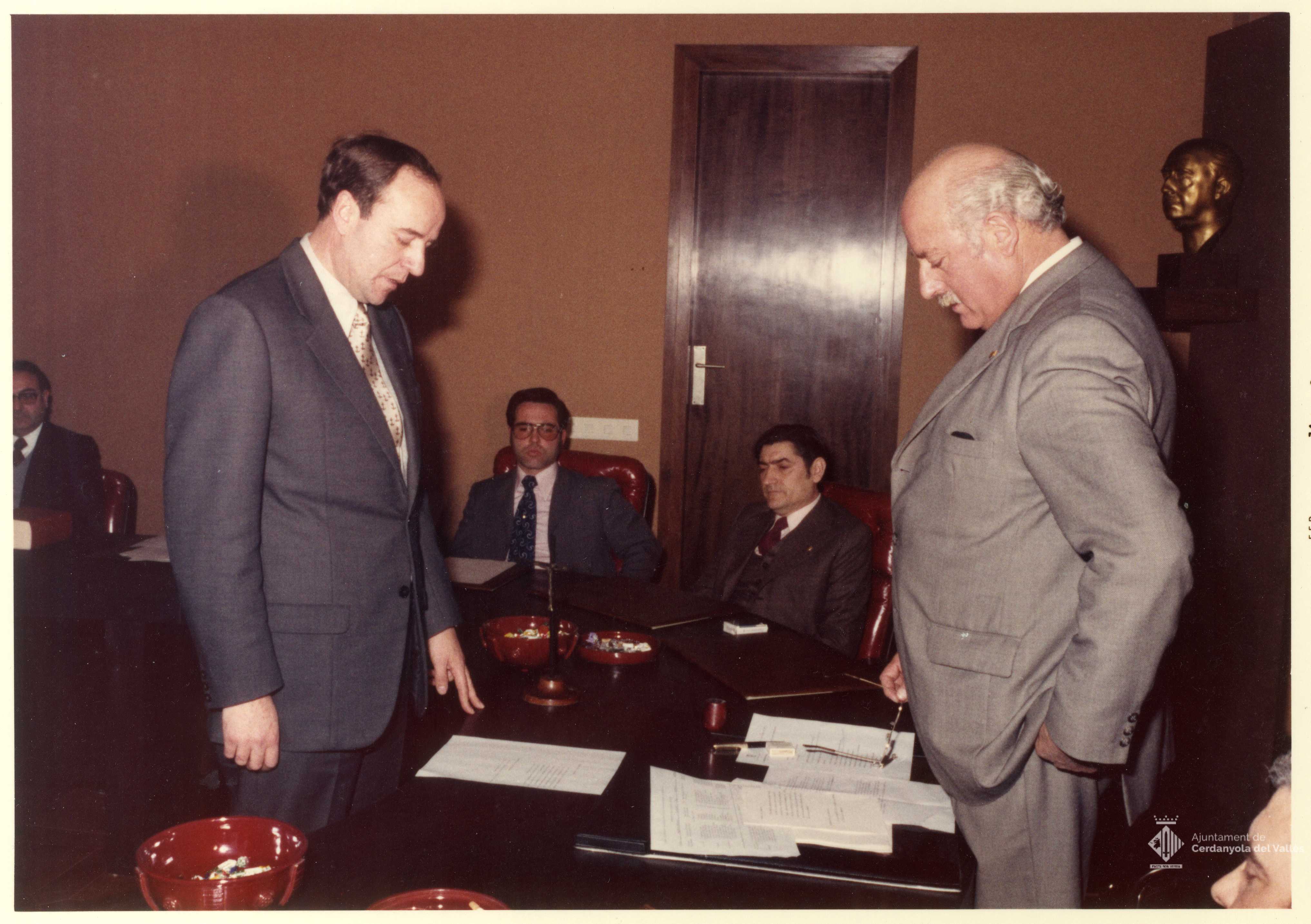 Jurament de regidors de l'Ajuntament de Cerdanyola del Vallès realitzat en algun moment del mandat de l'alcalde Domingo Fatjó Sanmiquel (1959-1976)