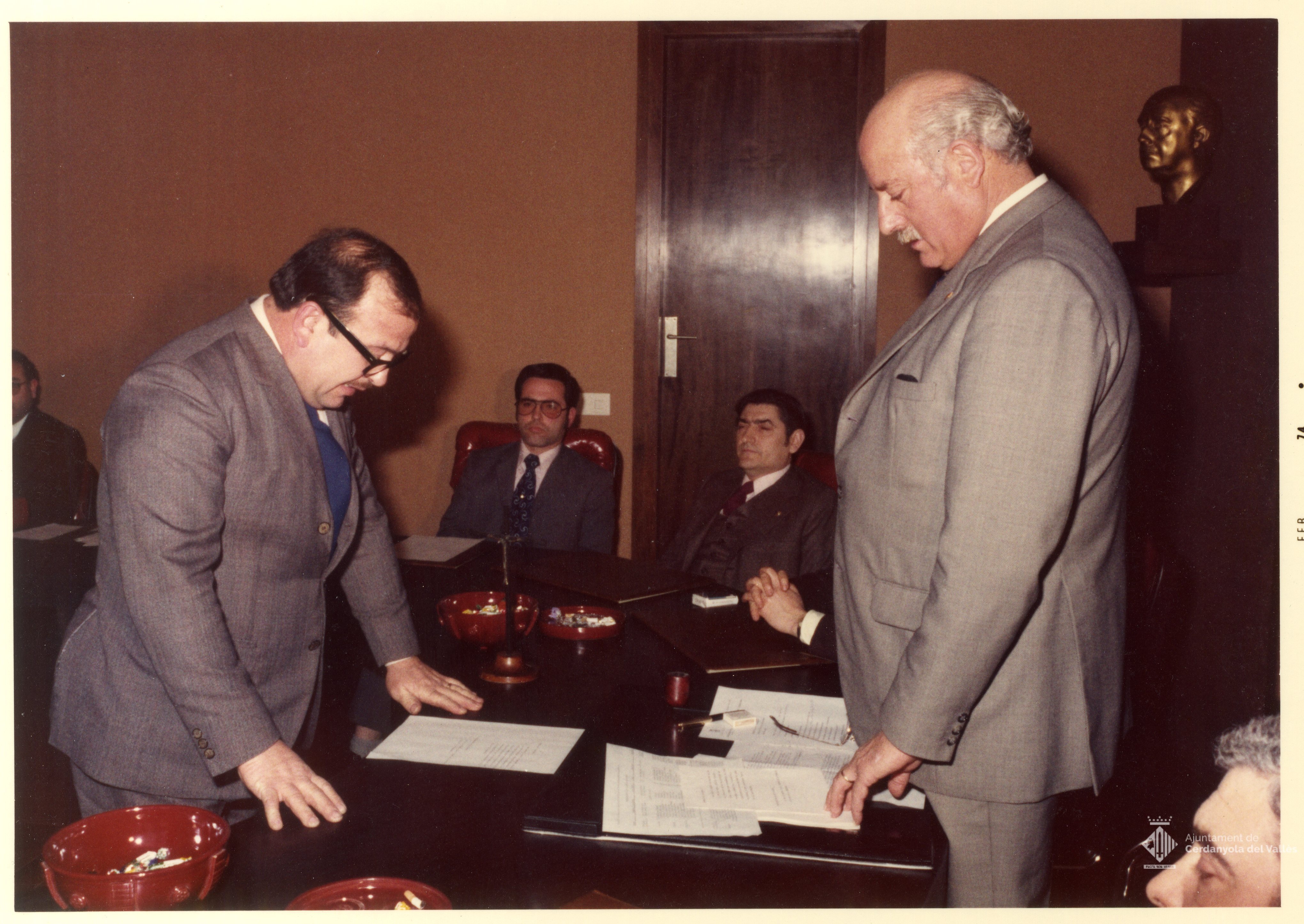 Jurament de regidors de l'Ajuntament de Cerdanyola del Vallès realitzat en algun moment del mandat de l'alcalde Domingo Fatjó Sanmiquel (1959-1976)