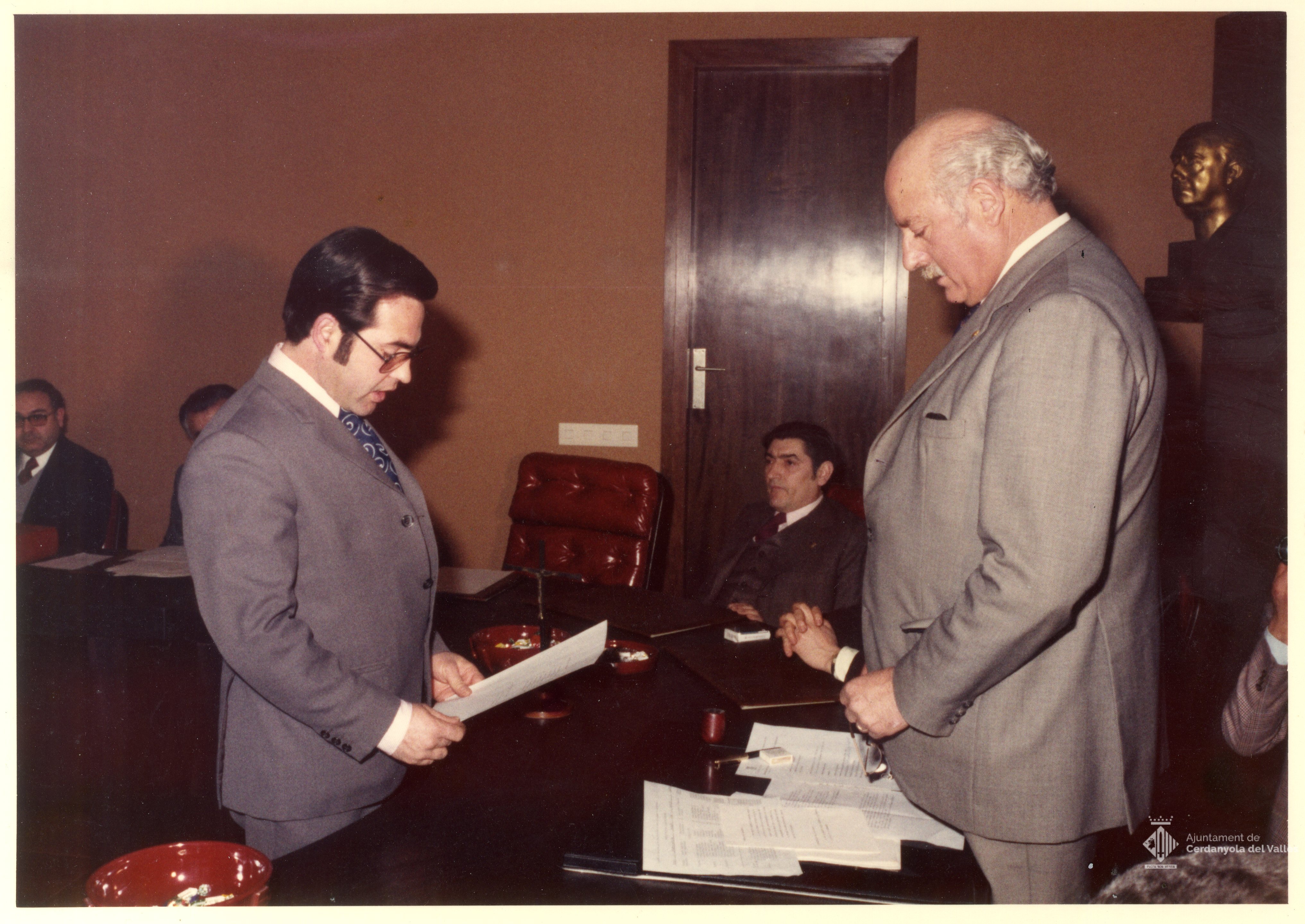 Jurament de regidors de l'Ajuntament de Cerdanyola del Vallès realitzat en algun moment del mandat de l'alcalde Domingo Fatjó Sanmiquel (1959-1976)