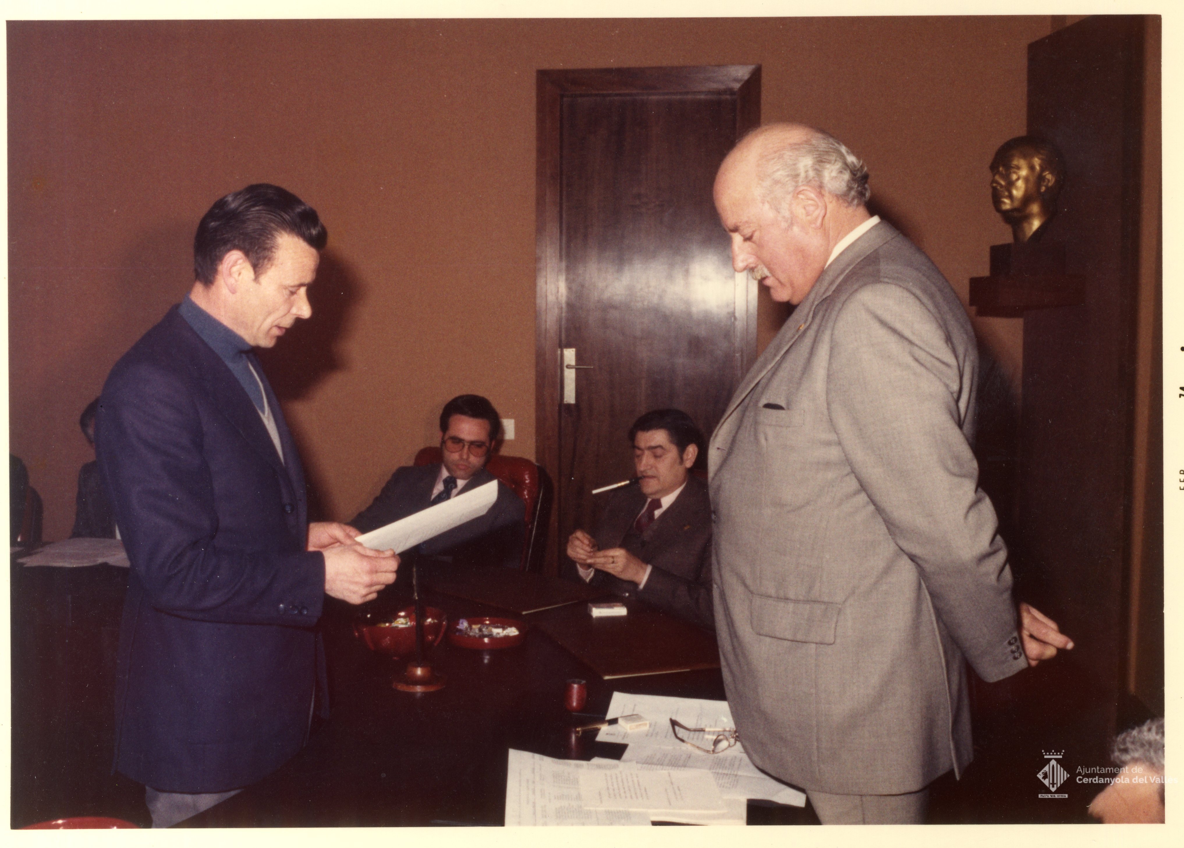 Jurament de regidors de l'Ajuntament de Cerdanyola del Vallès realitzat en algun moment del mandat de l'alcalde Domingo Fatjó Sanmiquel (1959-1976)
