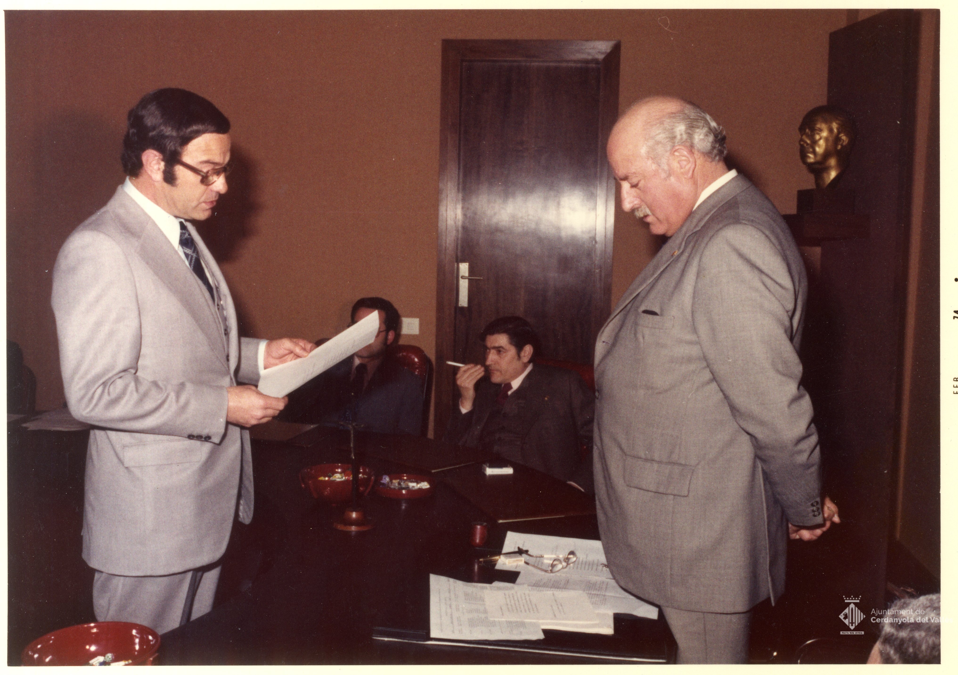 Jurament de regidors de l'Ajuntament de Cerdanyola del Vallès realitzat en algun moment del mandat de l'alcalde Domingo Fatjó Sanmiquel (1959-1976)