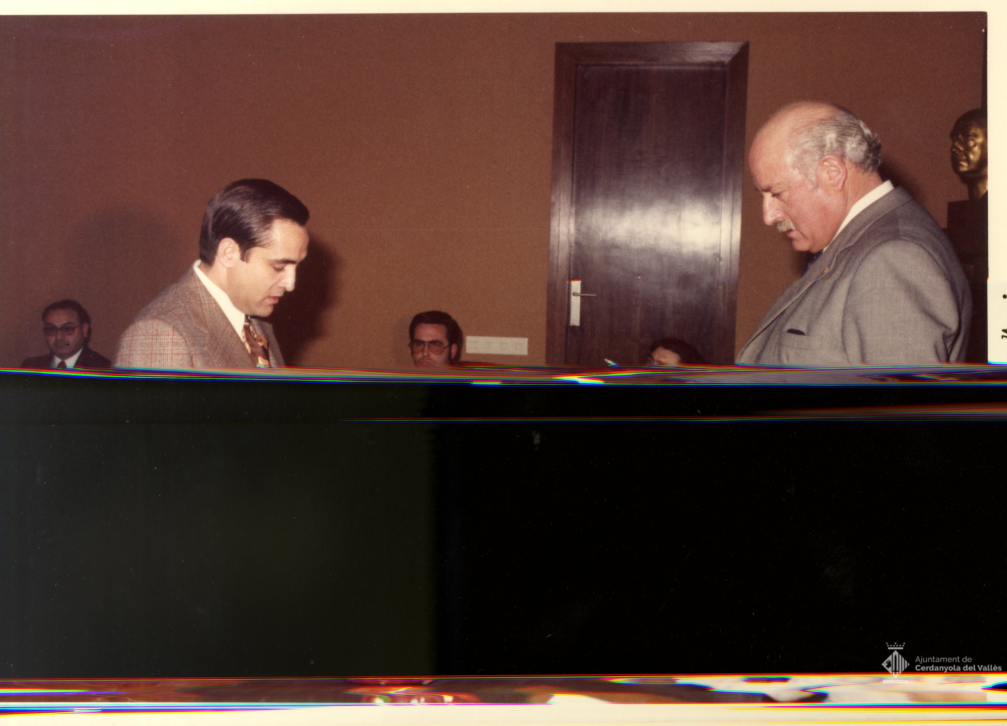 Jurament de regidors de l'Ajuntament de Cerdanyola del Vallès realitzat en algun moment del mandat de l'alcalde Domingo Fatjó Sanmiquel (1959-1976)