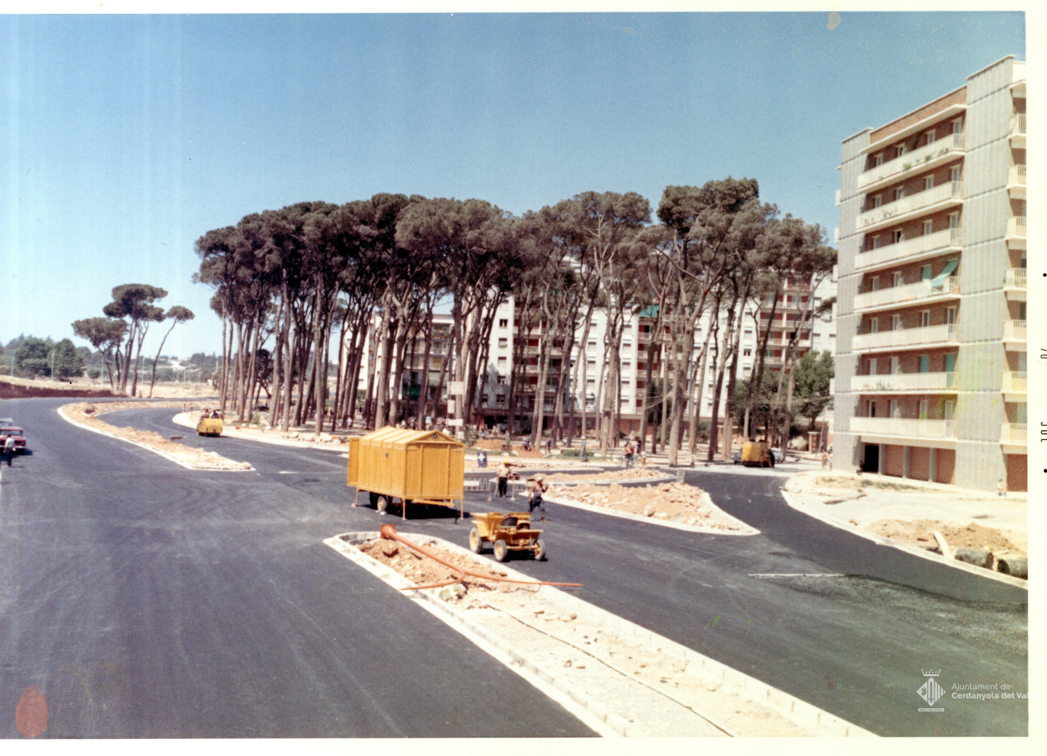 Treballs d'asfalt de la Ronda Cerdanyola Fontetes de Cerdanyola del Vallès realitzats durant el mandat de l'alcalde Domingo Fatjó Sanmiquel (1959-1976)