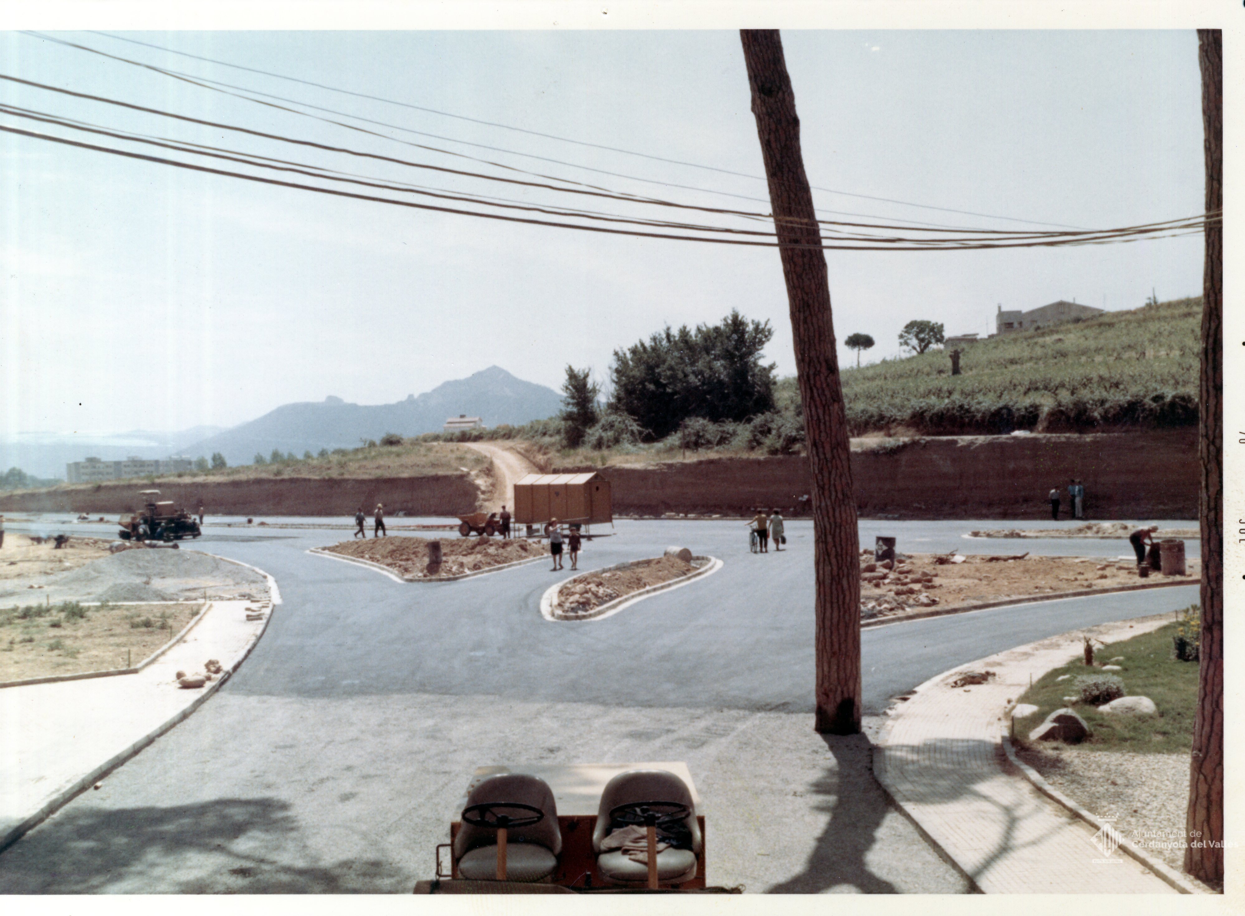 Treballs d'asfalt de la Ronda Cerdanyola Fontetes de Cerdanyola del Vallès realitzats durant el mandat de l'alcalde Domingo Fatjó Sanmiquel (1959-1976)