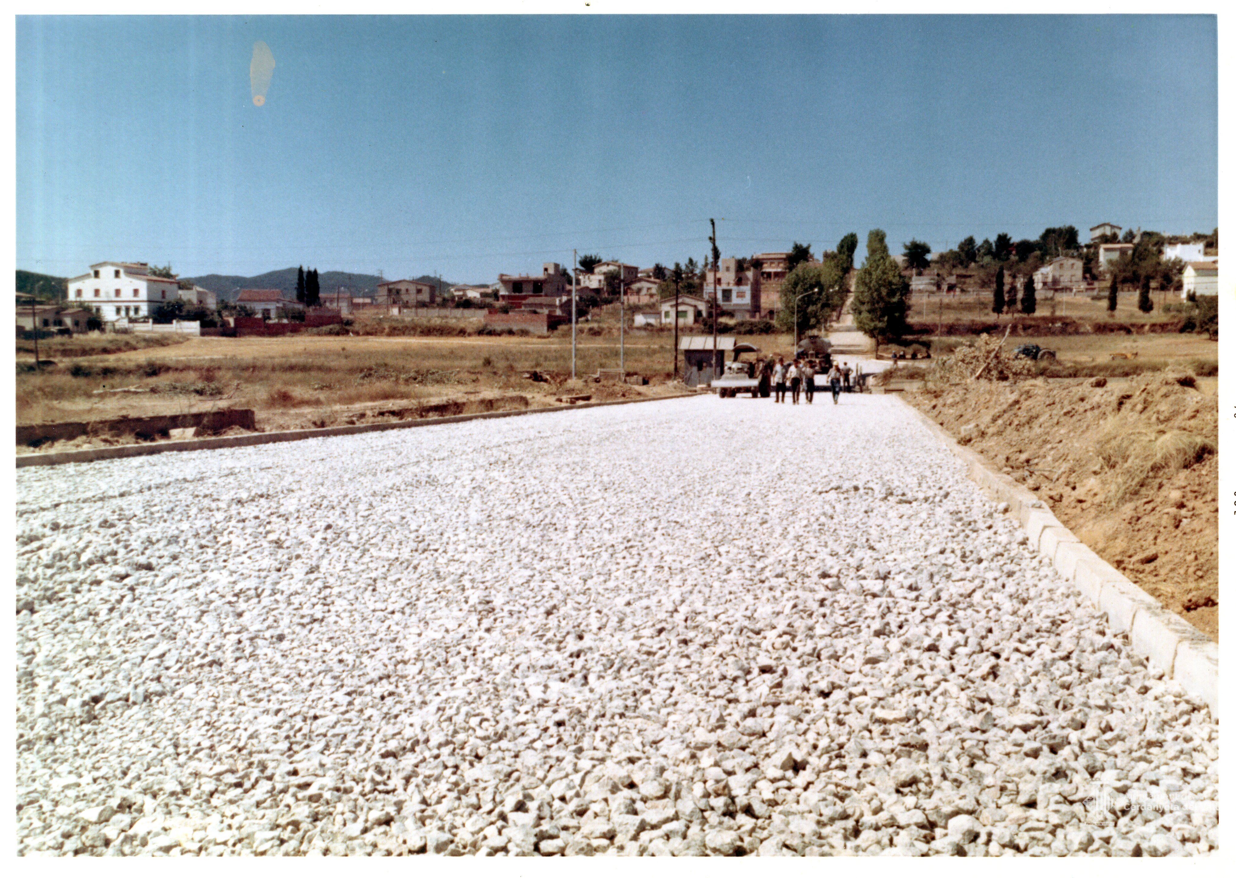 Treballs d'asfalt de la Ronda Cerdanyola Fontetes de Cerdanyola del Vallès realitzats durant el mandat de l'alcalde Domingo Fatjó Sanmiquel (1959-1976)