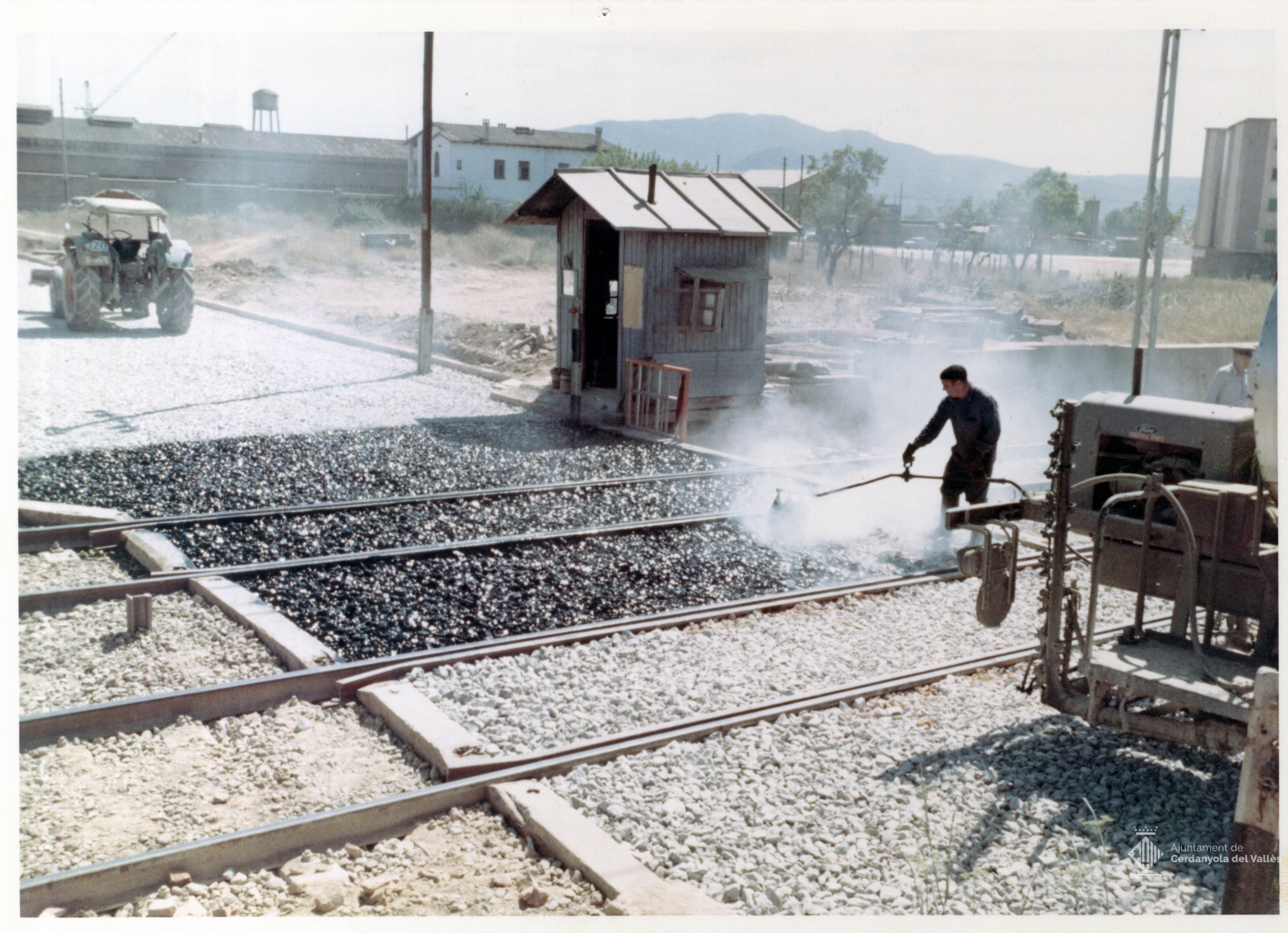 Treballs d'asfalt de la Ronda Cerdanyola Fontetes de Cerdanyola del Vallès realitzats durant el mandat de l'alcalde Domingo Fatjó Sanmiquel (1959-1976)