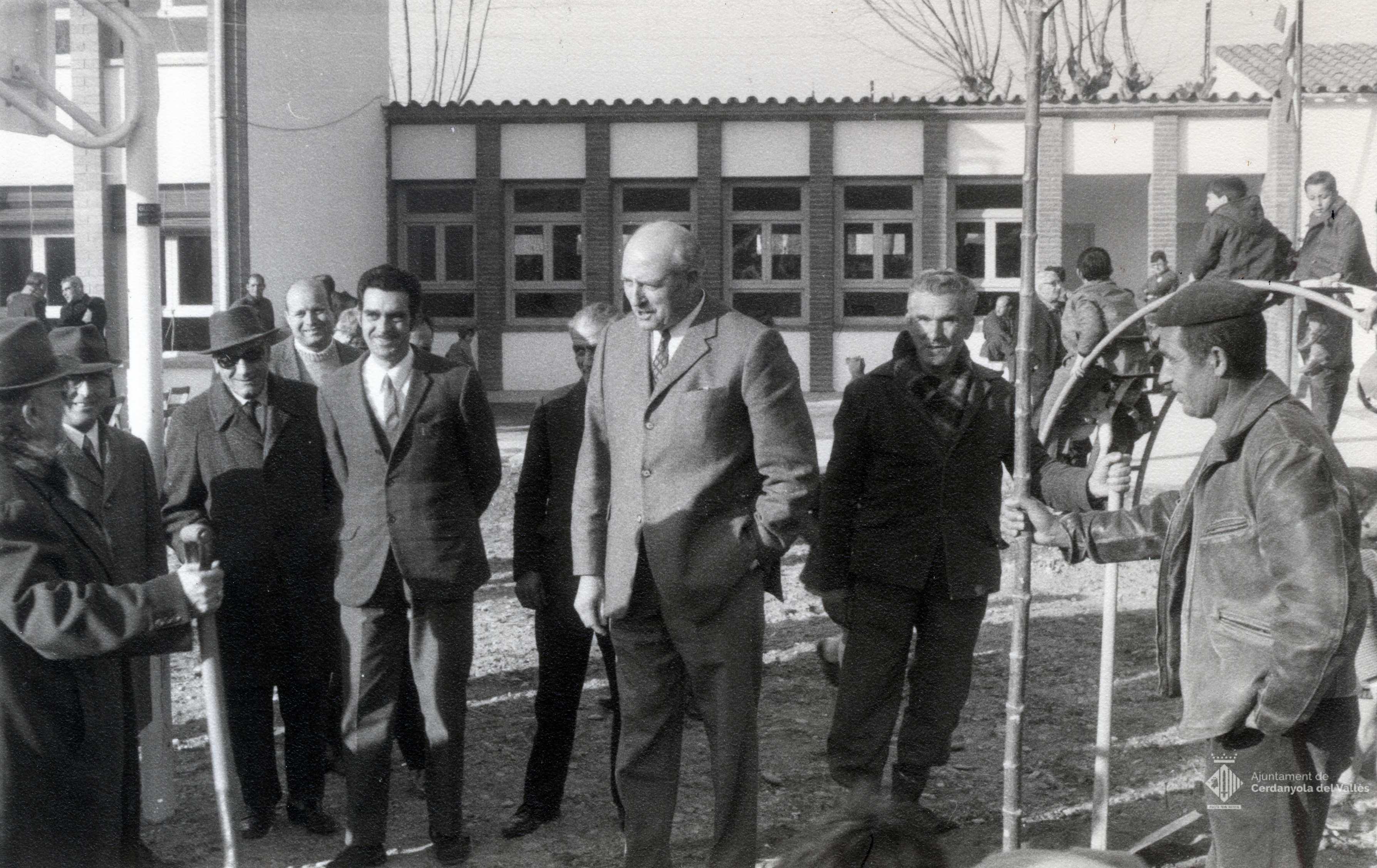 Plantada d'arbres a l'Escola Sant Martí de Cerdanyola del Vallès presidida per l'alcalde Domingo Fatjó Sanmiquel el 30 de març de 1968