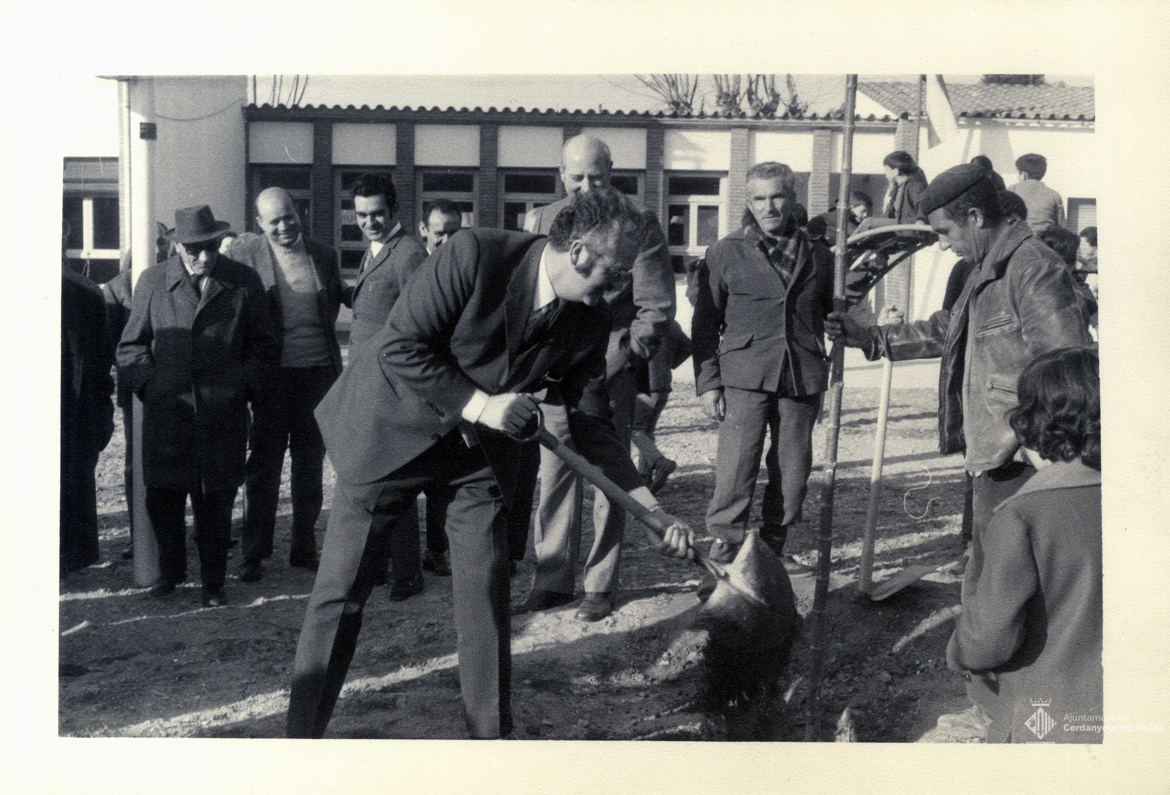 Plantada d'arbres a l'Escola Sant Martí de Cerdanyola del Vallès presidida per l'alcalde Domingo Fatjó Sanmiquel el 30 de març de 1968