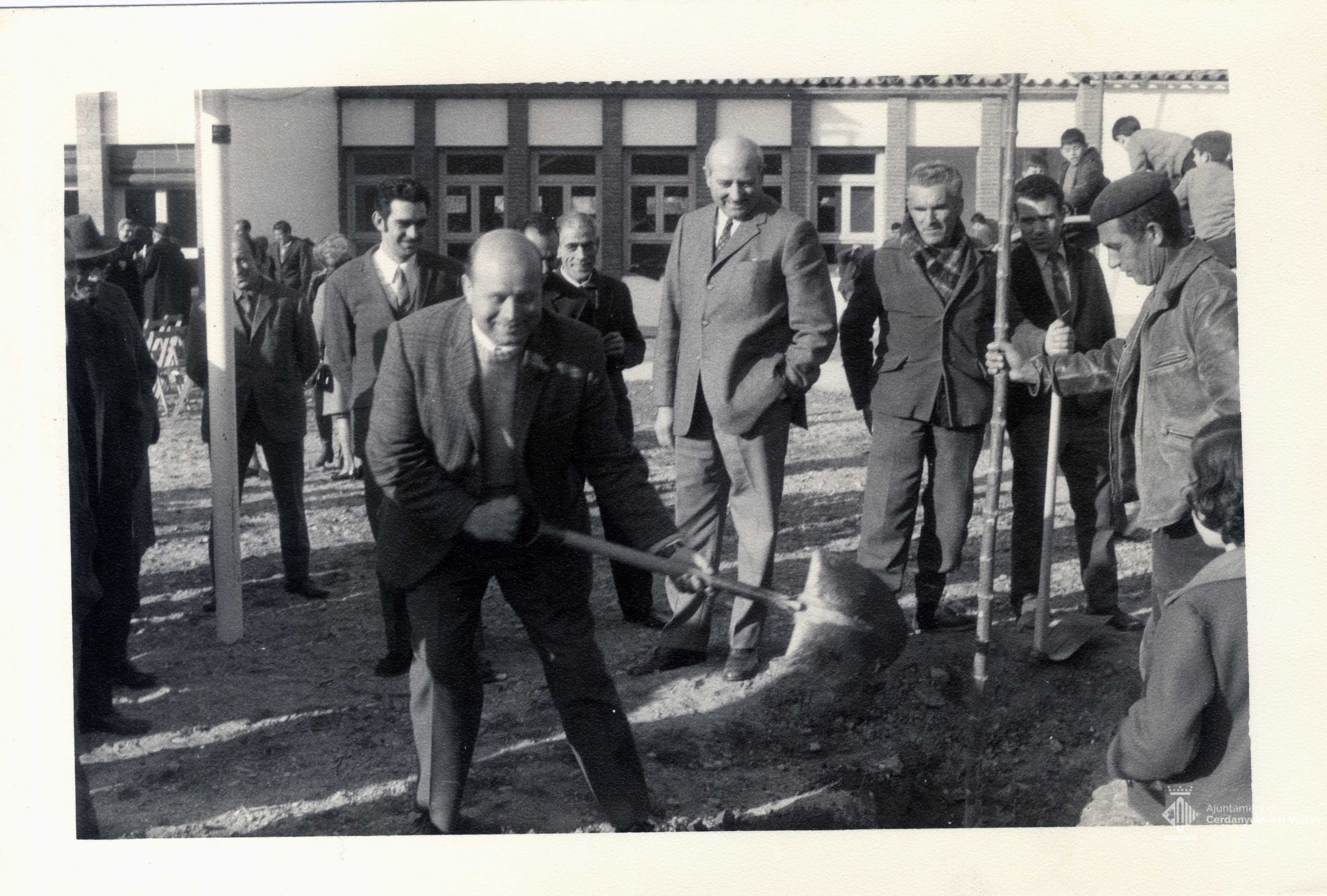 Plantada d'arbres a l'Escola Sant Martí de Cerdanyola del Vallès presidida per l'alcalde Domingo Fatjó Sanmiquel el 30 de març de 1968